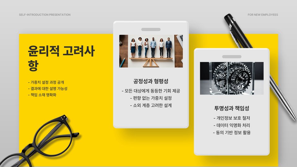 | 유의사항 | 데이터 품질, 가중치 범위, 결과 해석 및 반복 검증 |