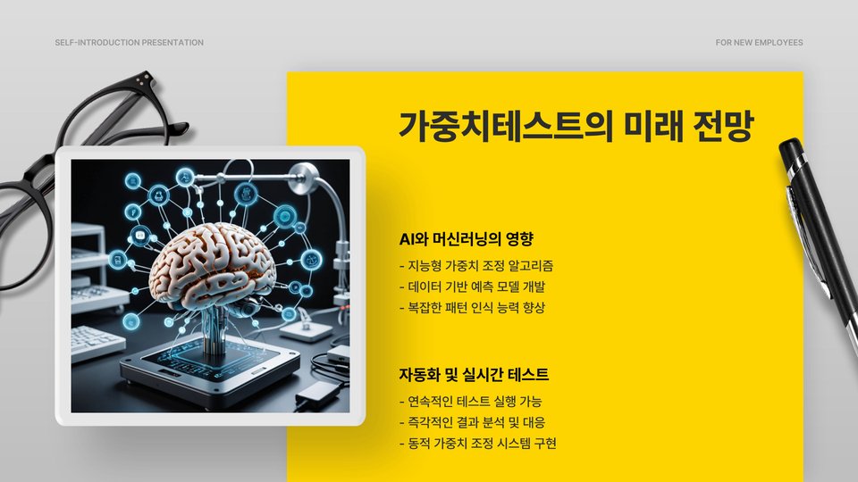 가중치 테스트를 실행하는 과정은 다음과 같습니다. 첫째, 데이터 세트를 준비합니다. 데이터 세트는 모델 학습에 필요한 다양한 특성을 포함해야 합니다. 둘째, 초기 가중치를 설정합니다. 모델의 성능을 평가하기 위해 초기 가중치를 설정하고, 이를 기준으로 테스트를 진행합니다. 셋째, 가중치를 조정합니다. 성능 평가 후, 데이터 포인트에 대한 가중치를 조정하여 모델의 예측 결과를 개선합니다.