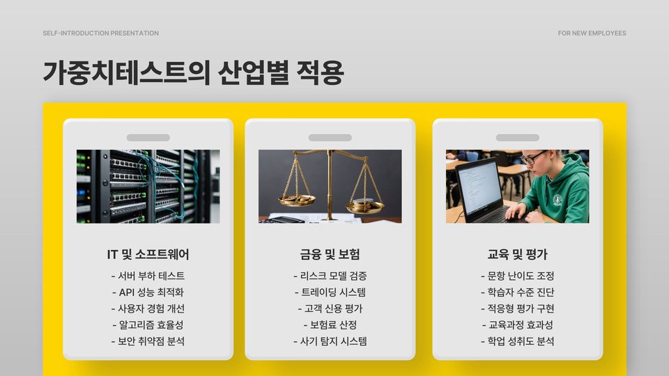 가중치테스트는 통계학적으로 유의미한 결과를 도출하는 데 큰 역할을 하며, 이에 따라 다양한 분야에서 활용됩니다. 예를 들어, 마케팅에서는 특정 요소들이 소비자 구매 결정에 미치는 영향을 평가하기 위해 가중치테스트를 사용합니다. 또한, 의료 분야에서는 환자 치료 방법을 결정할 때 변수들의 영향을 분석하는 데 매우 중요합니다.