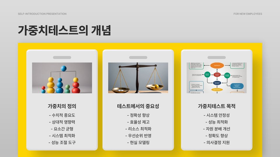 가중치테스트는 주어진 데이터 집합에서 각 변수의 중요도를 평가하는 과정을 말합니다. 이 과정을 통해 변수의 가중치를 조정하여 모델의 예측 정확도를 향상시킬 수 있습니다. 가중치가 높은 변수는 예측에 더 큰 영향을 미치고, 반대로 가중치가 낮은 변수는 상대적으로 덜 중요한 영향을 미친다고 볼 수 있습니다.