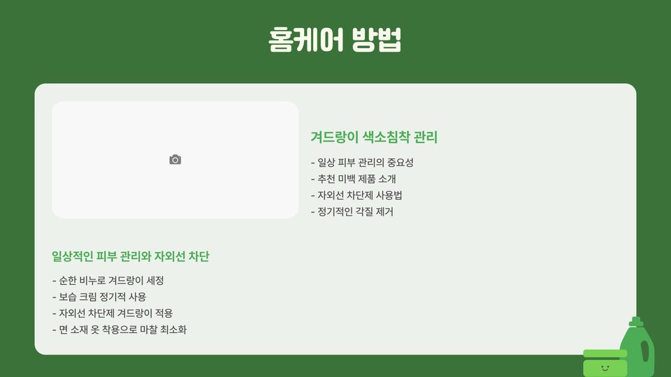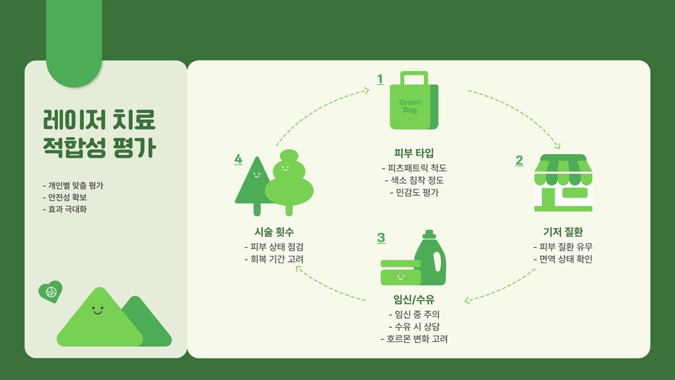 - 치료 후 주의 사항: 햇빛 노출 피하기, 적절한 보습, 정기 검진
