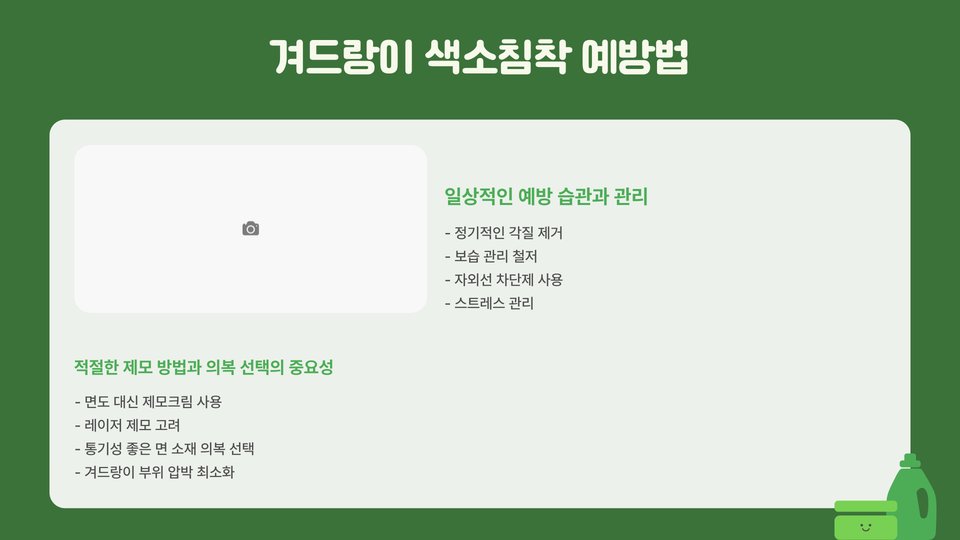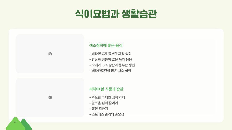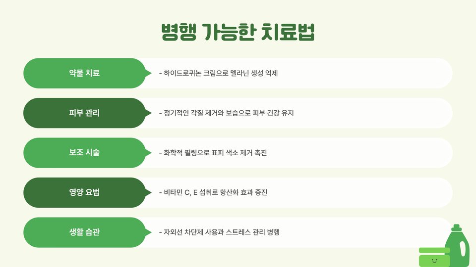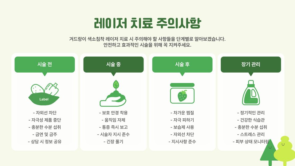 - 치료 후 주의 사항: 햇빛 노출 피하기, 적절한 보습, 정기 검진