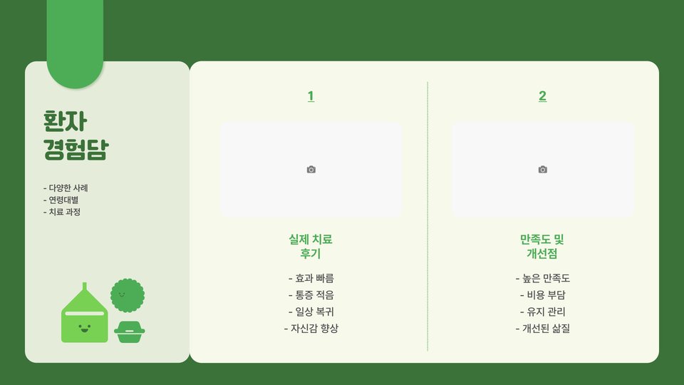 둘째, 검증된 효과입니다. 많은 임상 실험과 사례를 통해 효능이 입증되어 있어, 치유율이 높은 방법으로 자리매김하고 있습니다. 효과는 물론, 치료 과정에서의 안전성도 높습니다.