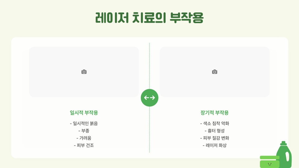 치료 후에는 피부가 약간 붉어질 수 있으나, 대부분은 며칠 내에 자연스럽게 회복됩니다. 치료 결과를 최적화하기 위해서는 일정 기간 간격을 두고 여러 차례의 치료가 필요할 수 있습니다. 정기적인 상담과 경과 확인이 필수적입니다.