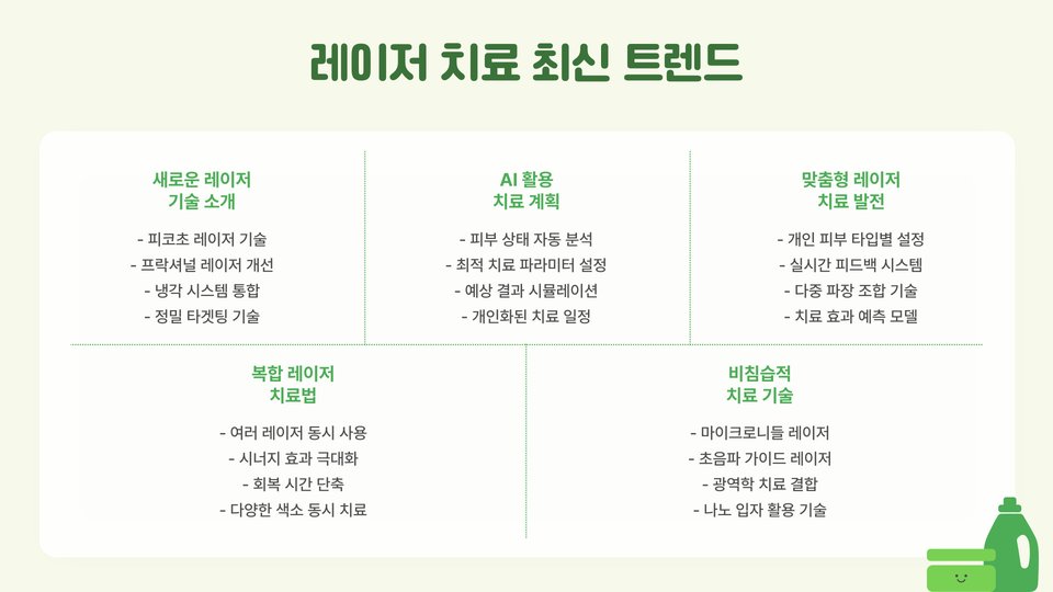 - 레이저 치료의 장점: 정확성, 짧은 회복 시간, 지속적인 효과