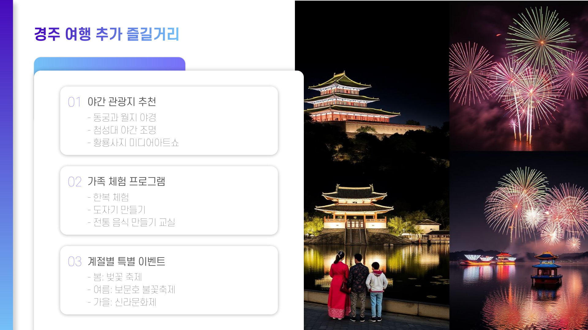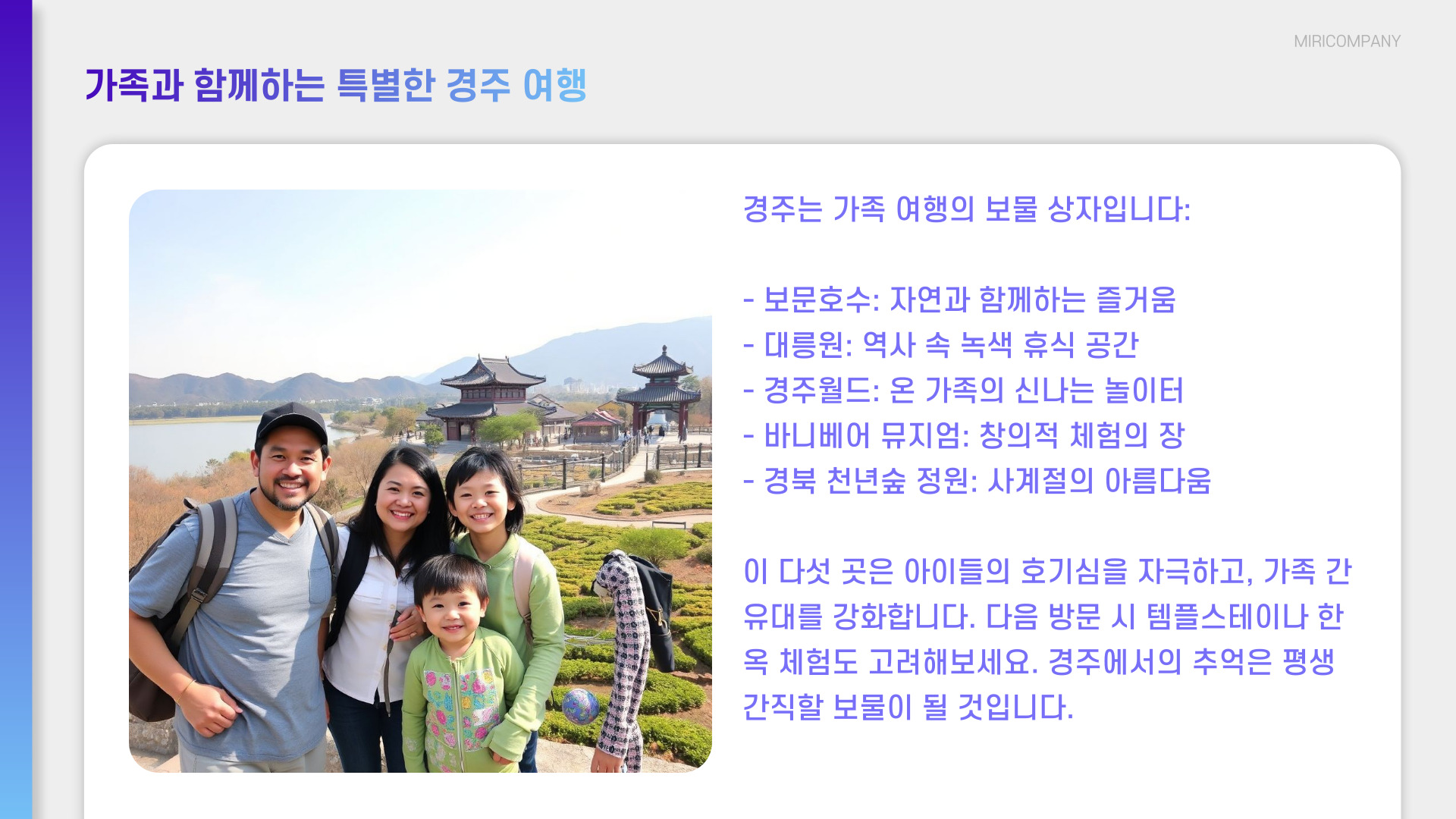 아이들과 함께 즐길 수 있는 경주의 다양한 장소들, 이제 선택은 여러분의 몫입니다! 각 장소에서 특별한 경험을 쌓고, 소중한 추억을 만들어 보세요.