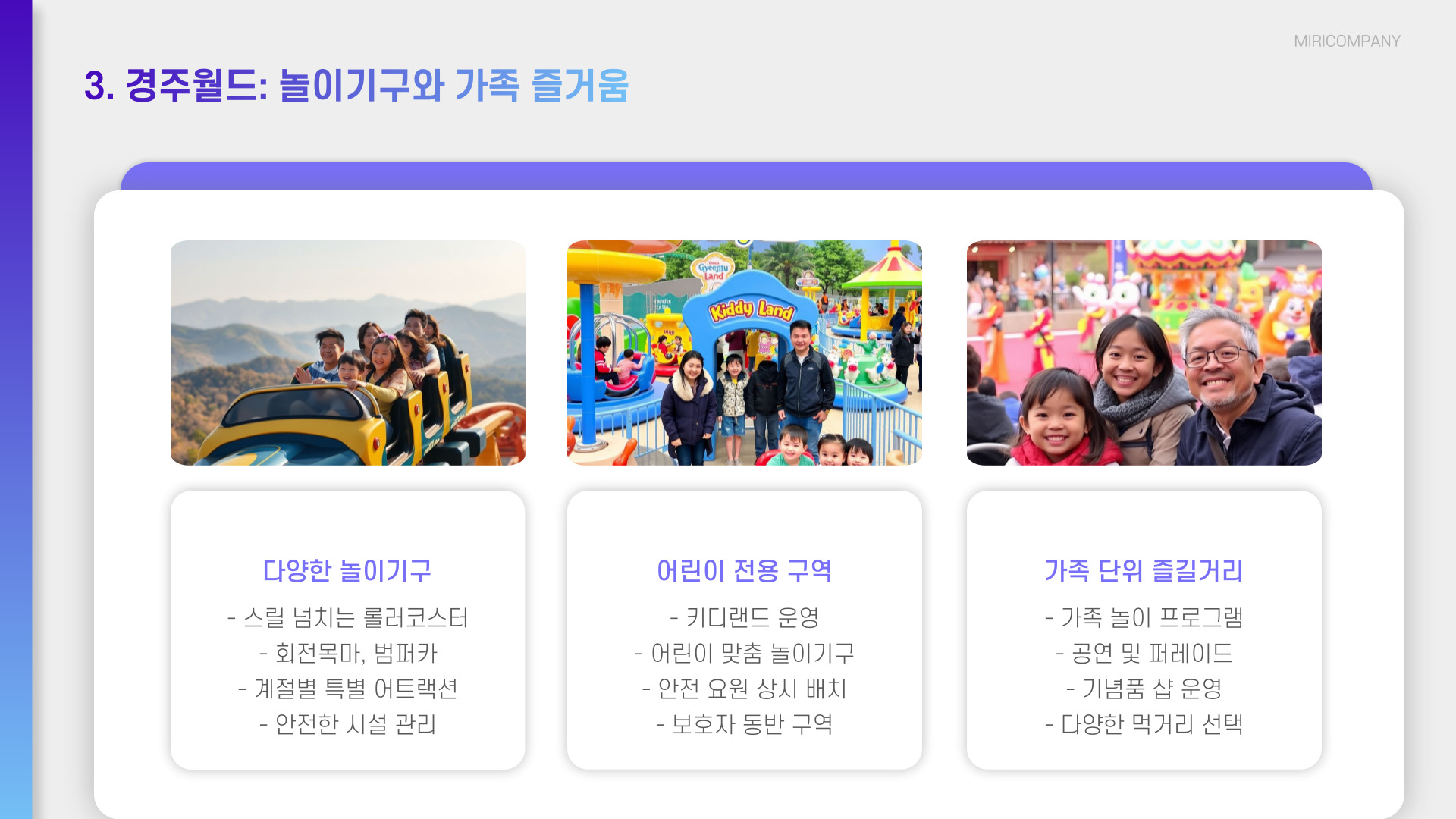 - 다양한 놀이시설과 즐길 거리가 많은 관광단지