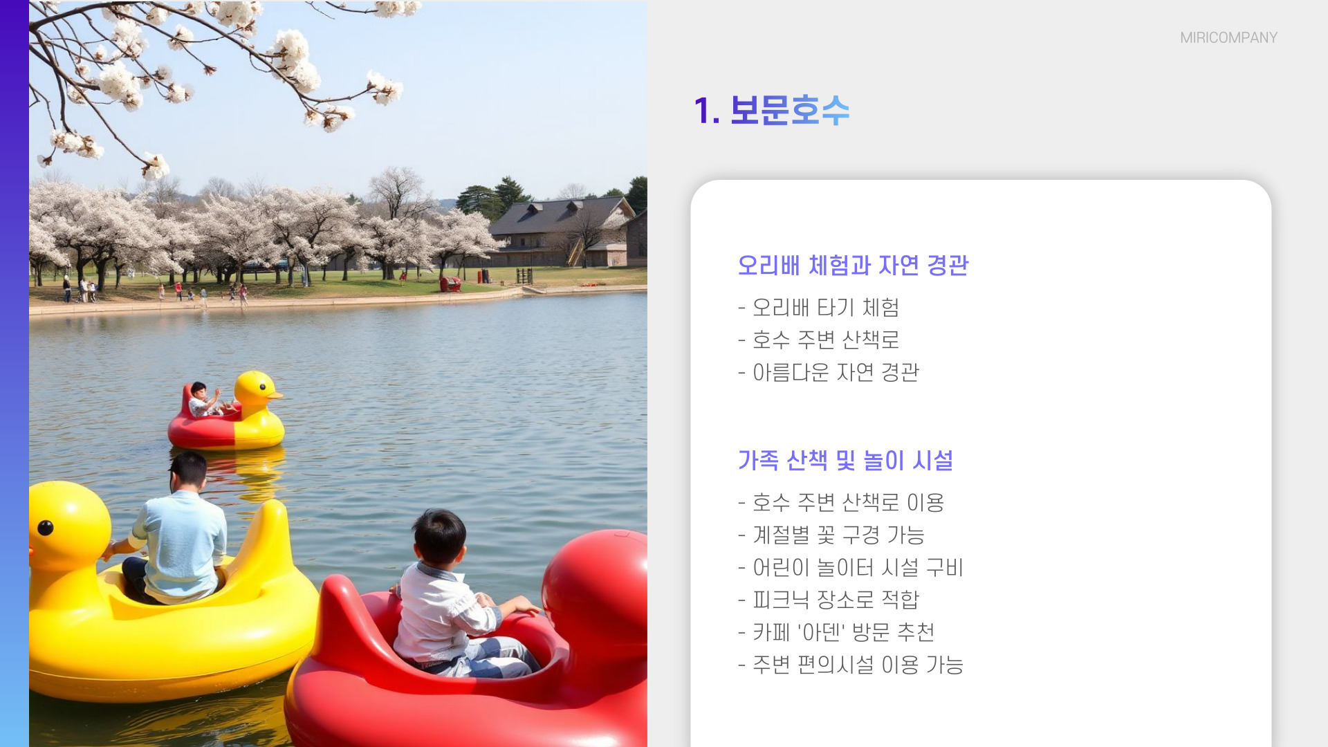 또한, 보문 호수 주변에는 다양한 놀이시설과 피크닉 장소가 마련되어 있어 가족 단위 방문객들에게 안성맞춤입니다. 아이들은 놀이터에서 신나게 놀 수 있고, 부모님은 여유롭게 호수의 경치를 즐길 수 있습니다. 가족과 함께하는 피크닉은 언제나 좋은 선택입니다.