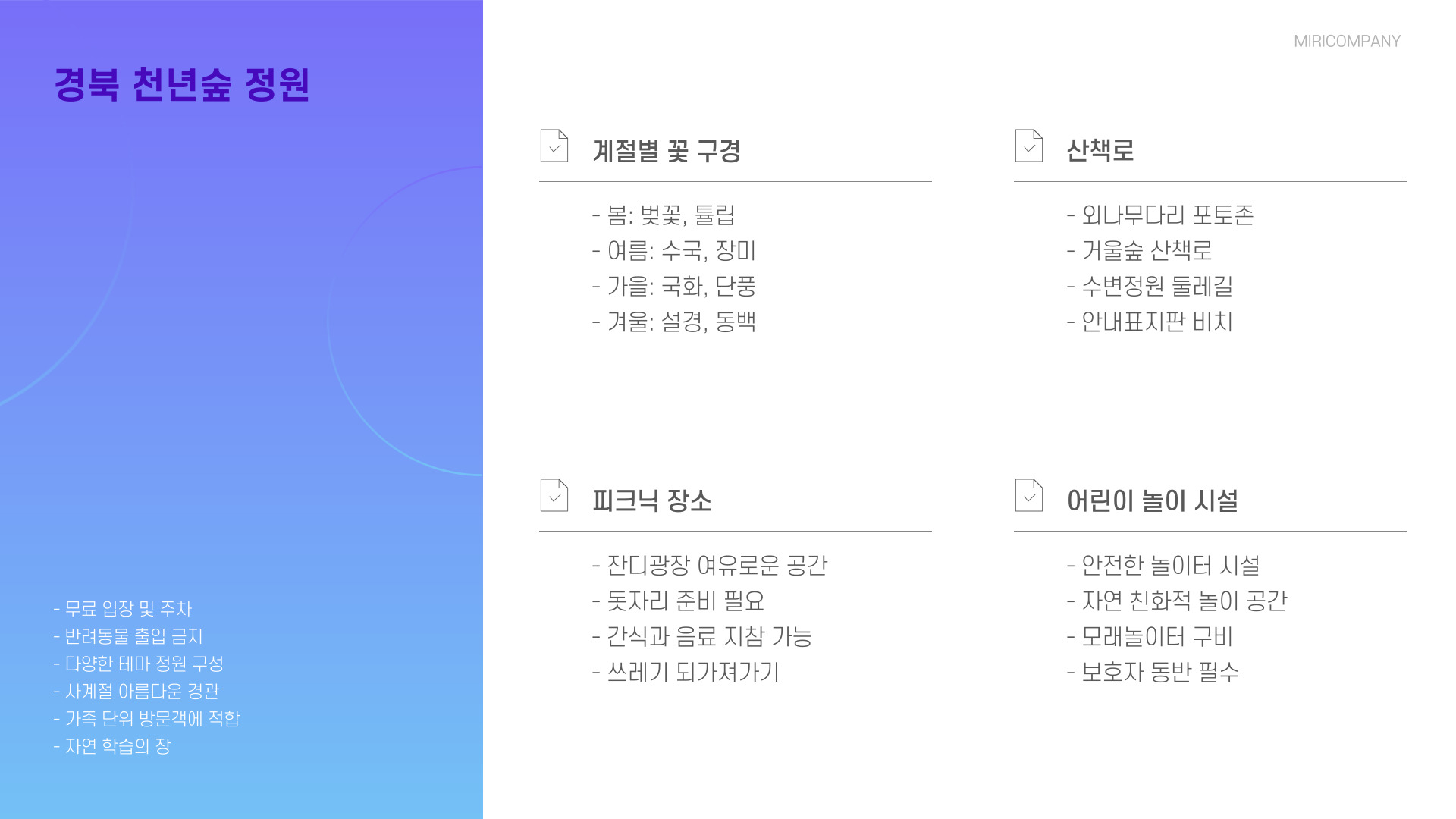 - 경주 월성 - 역사 교육과 자유 놀이 공간 제공.
