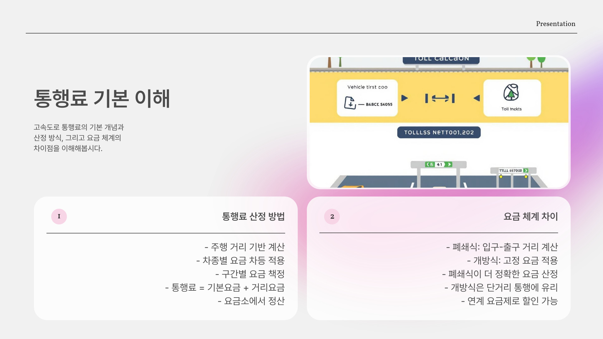 • 차량 종류에 따라 통행료 기준 차이 고려