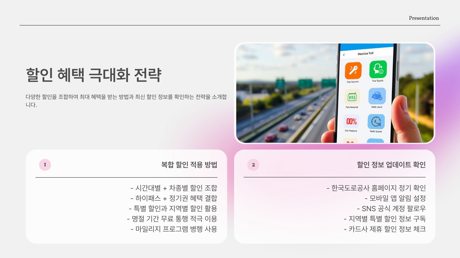 Tags: 고속도로, 통행료, 할인, 하이패스, 할인 제도, 특별 할인, 온라인 정보, 여행 비용, 통행 경로, 꿀팁