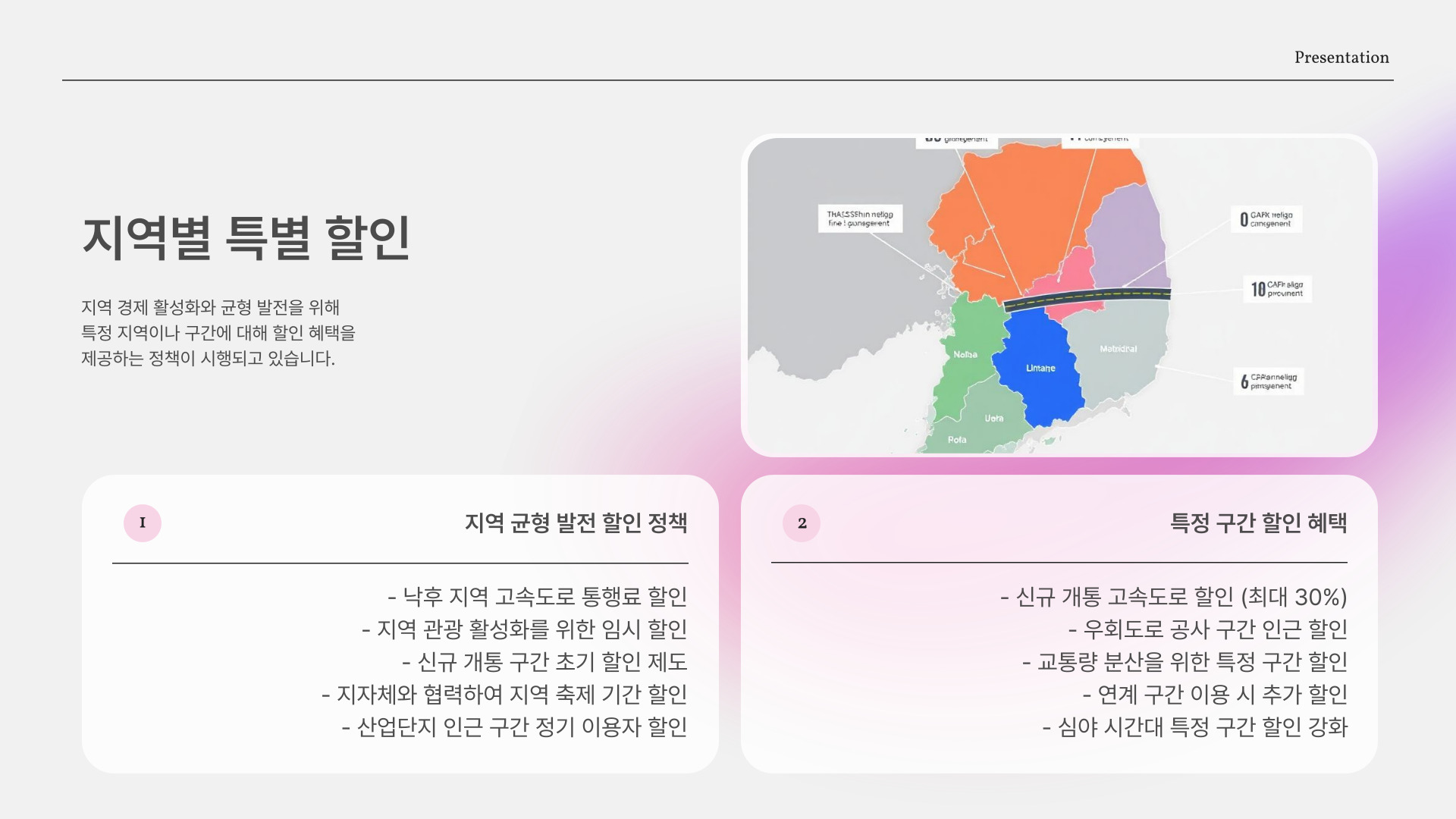 고속도로 통행료 할인 혜택은 다양한 특별 할인 제도를 통해 더욱 증가할 수 있습니다. 가족 할인, 경로 우대 할인 등 여러 옵션이 있습니다. 가족 할인은 같은 가족 차량이 연속적으로 통행할 경우 적용되는 할인으로, 경로 우대 할인은 노인이나 장애인 등 특정 대상을 위한 특별 할인입니다.