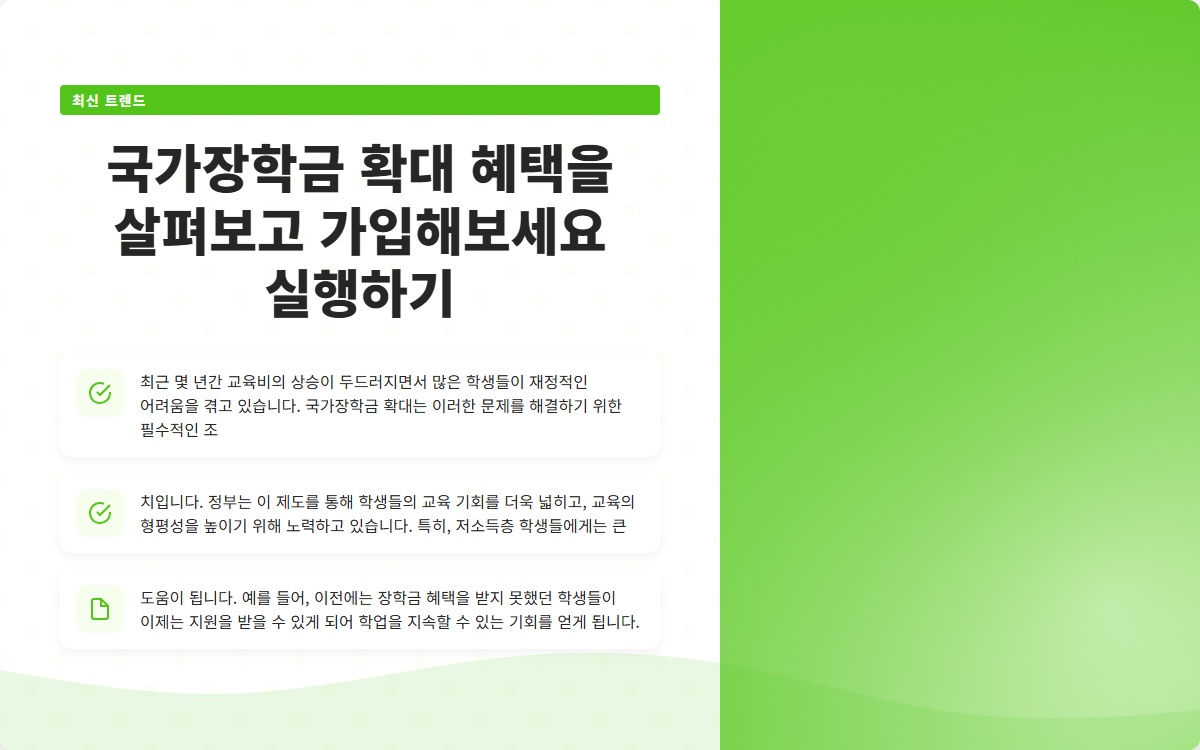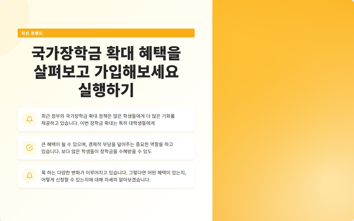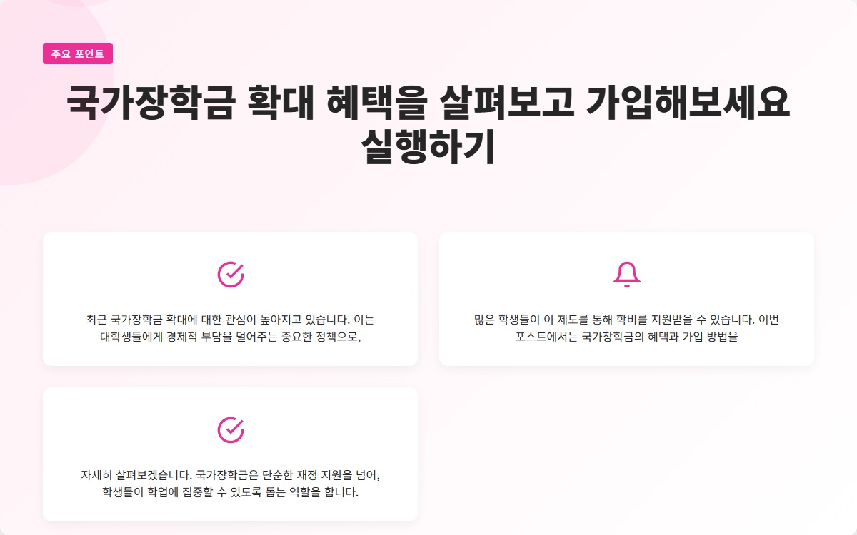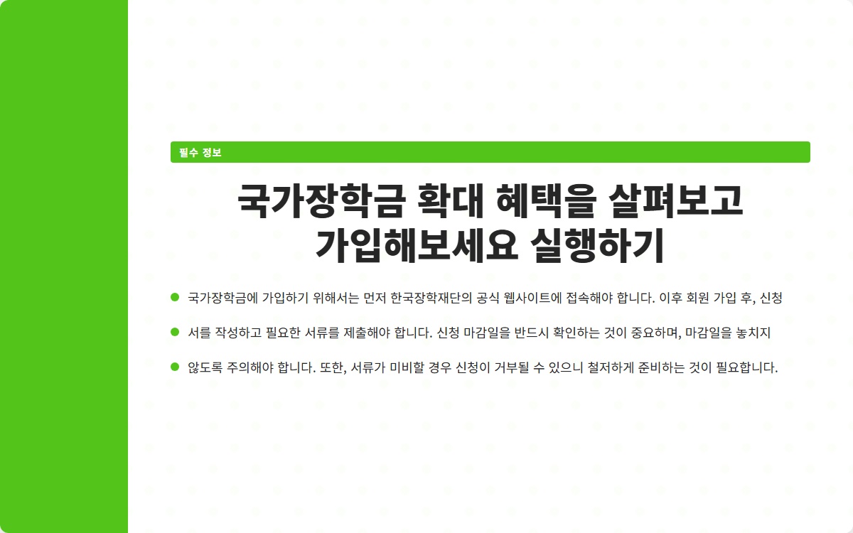 국가장학금 확대 혜택을 살펴보고 가입해보세요 실행하기