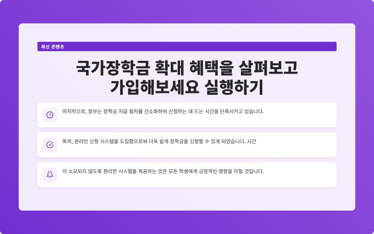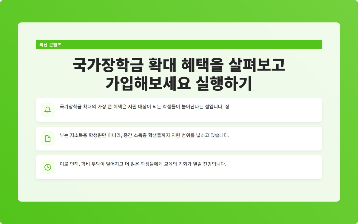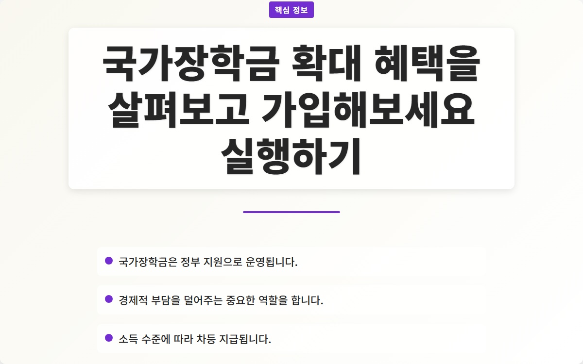 Tags: 국가장학금, 교육 지원, 경제적 도움, 대학생 지원, 한국장학재단, 소득 지원, 장학금 신청, 학비 지원, 학생 혜택, 국가 정책