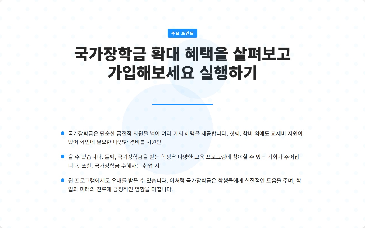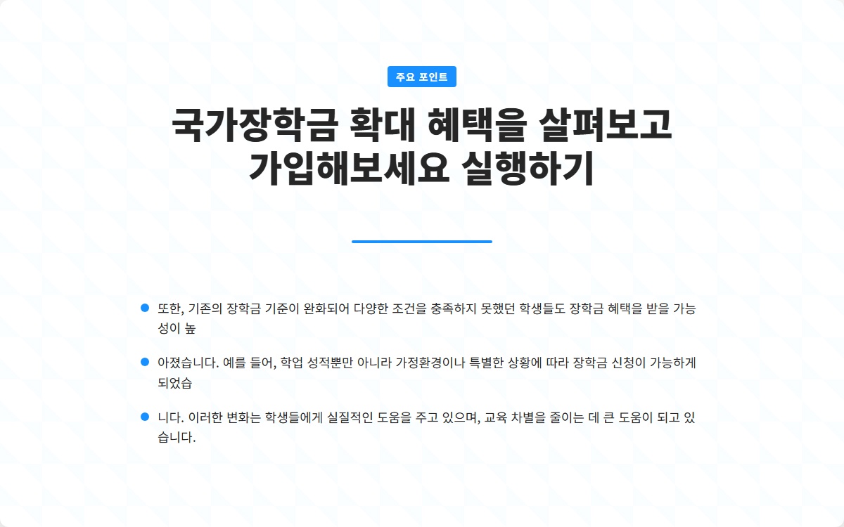 | 국가장학금 확대 | 더 많은 학생들에게 교육 기회 제공 |
