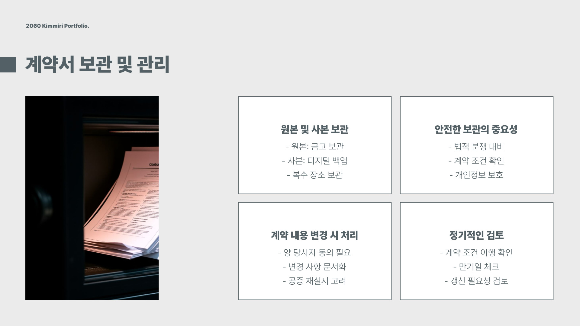 - 계약서 보관 시 안전한 장소 선택