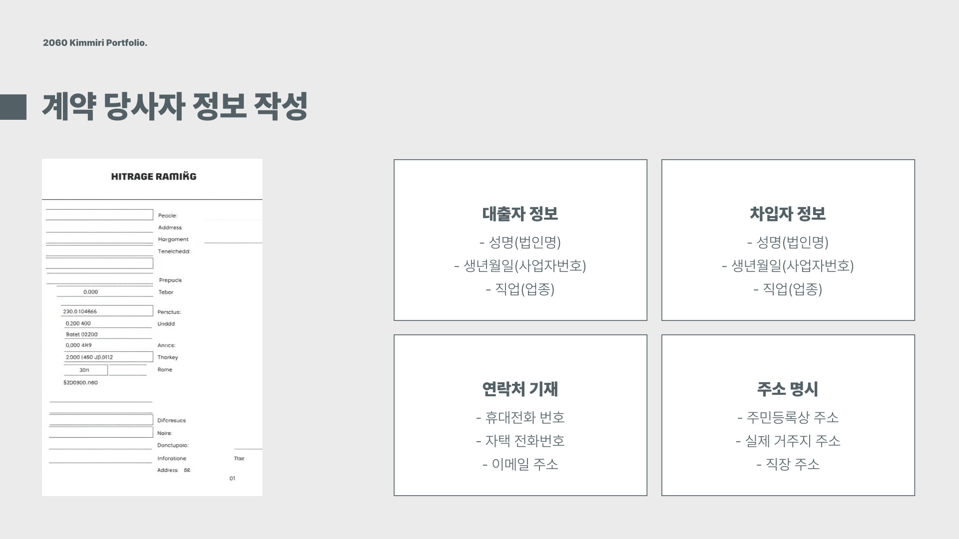 - 계약 당사자 정보: 대출자와 차입자의 이름, 주소, 연락처