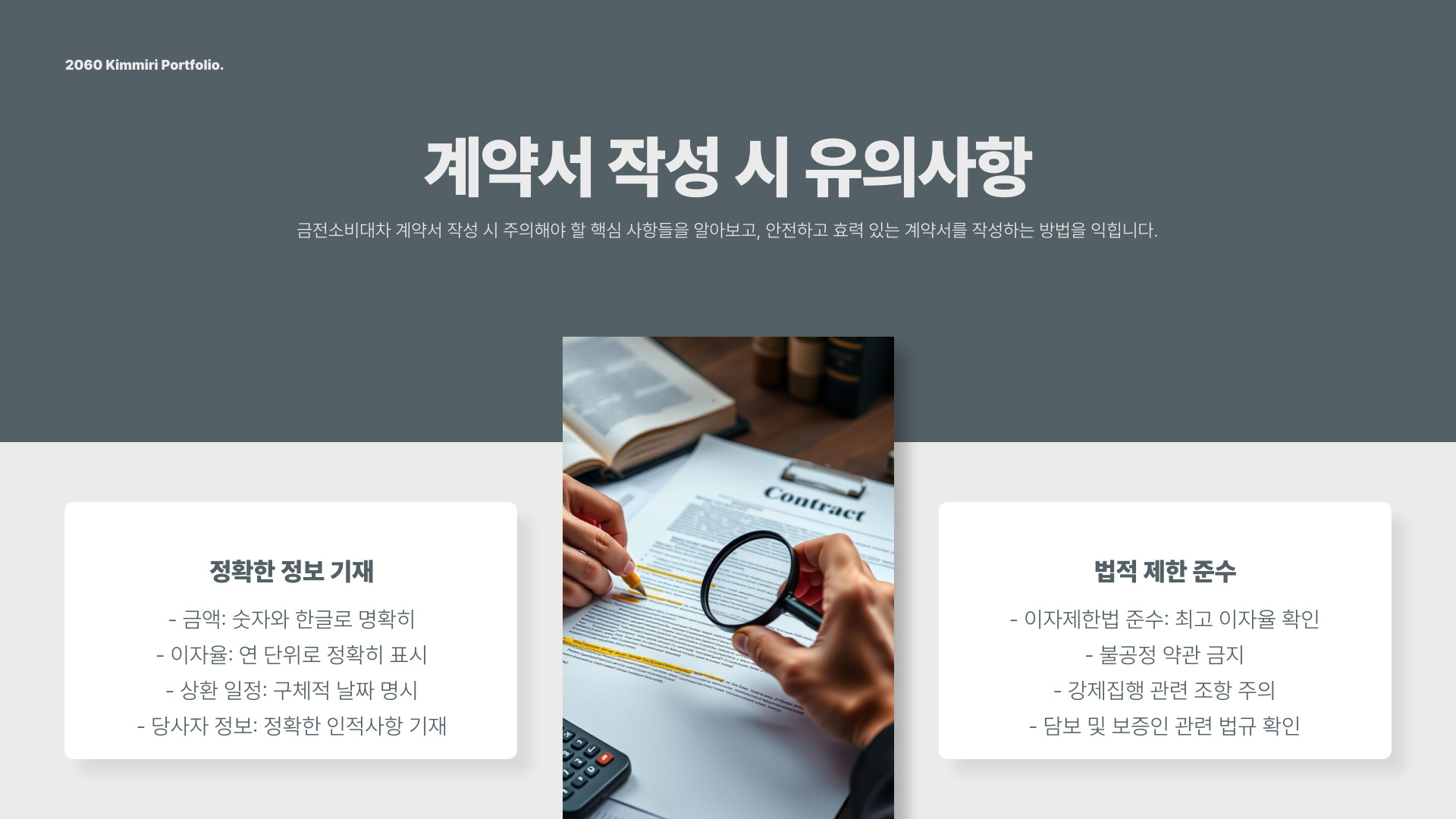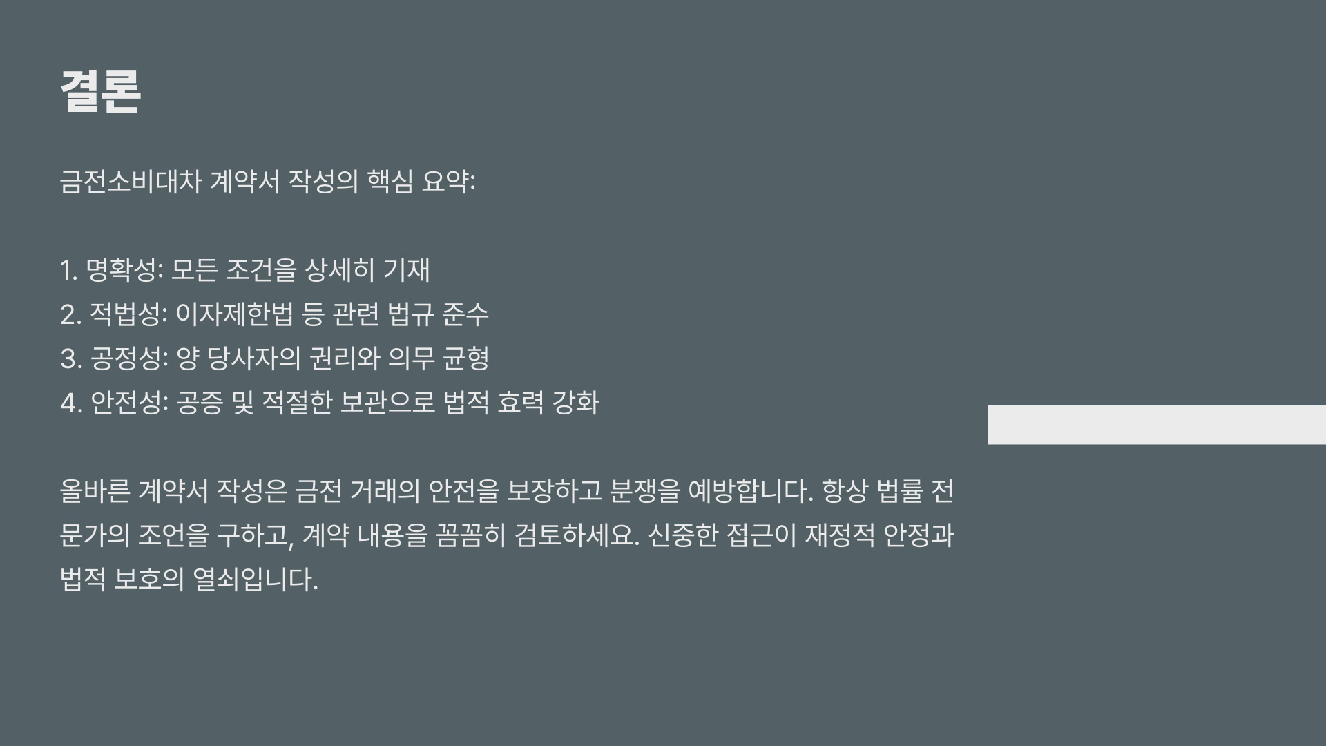 - 계약서는 명확하고 구체적으로 작성해야 합니다.