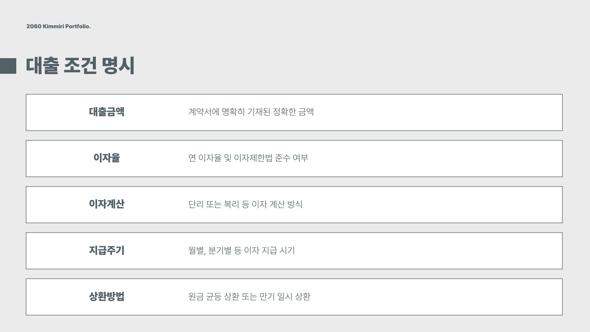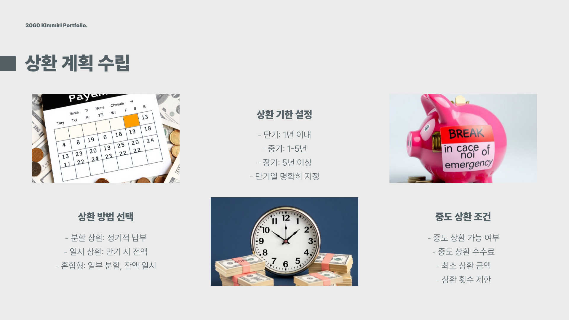 - 상환 방법 및 시점 명시