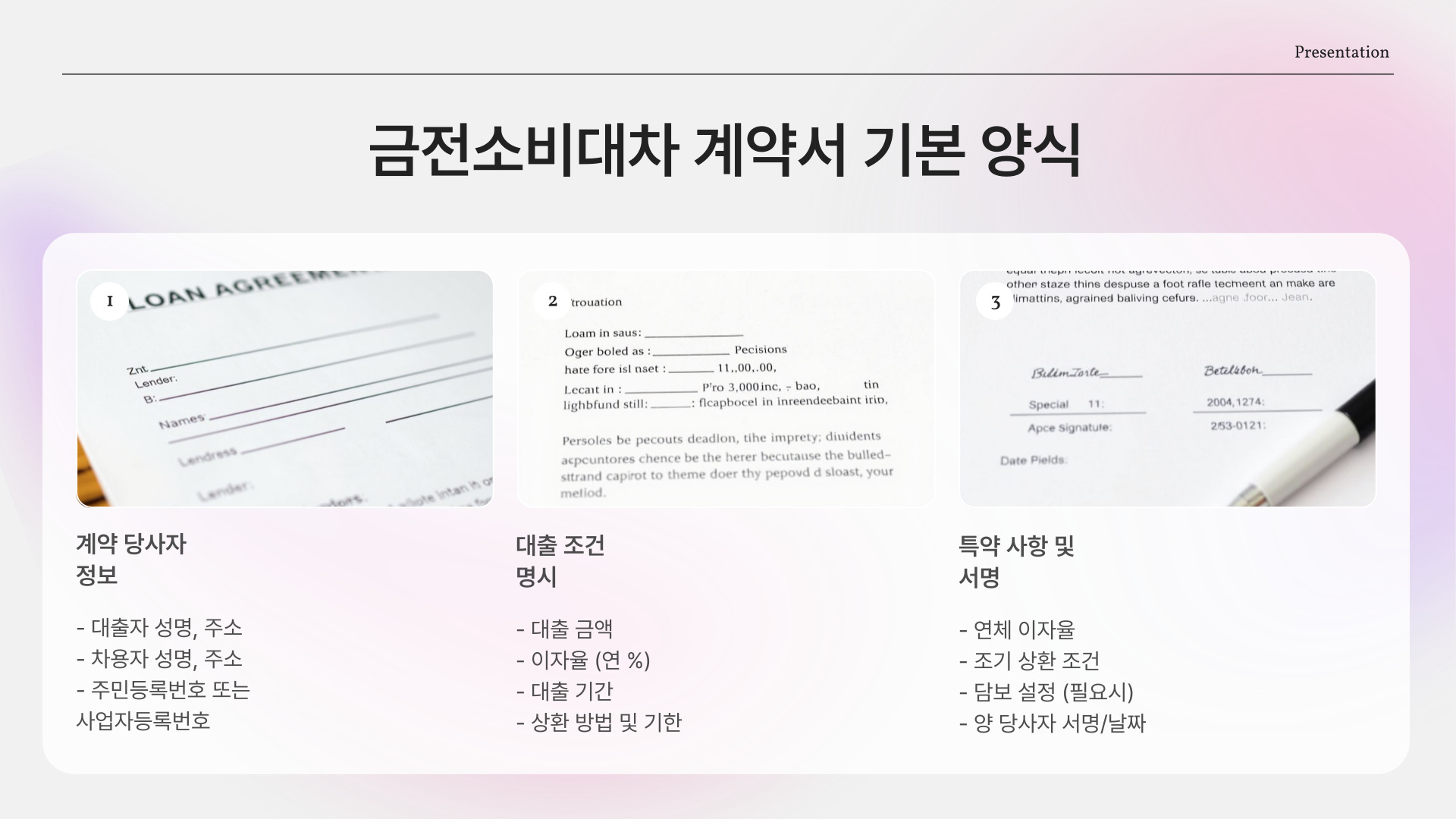 - 계약서는 모든 대출 거래의 기본입니다.