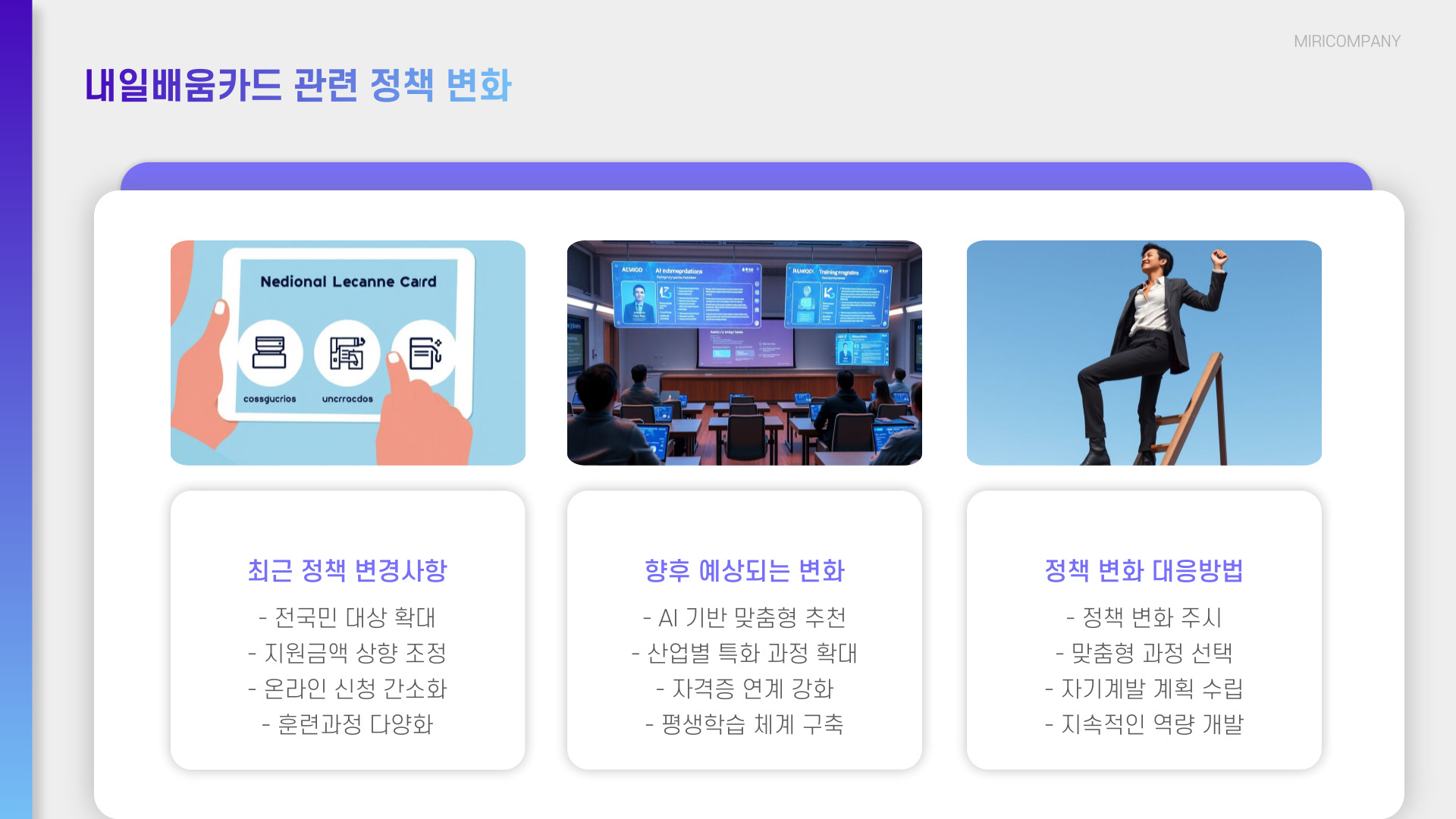 - 내일배움카드는 재직자를 위한 직업훈련 지원 카드입니다.