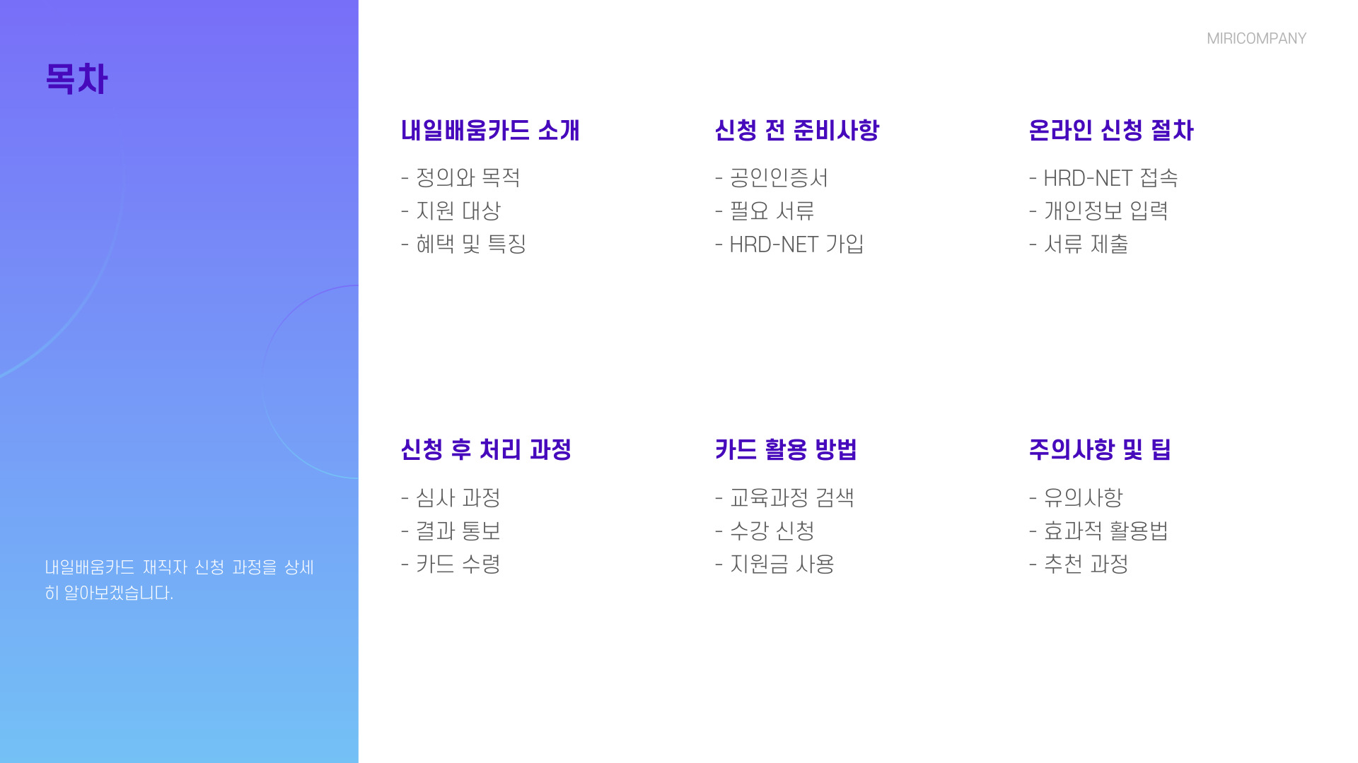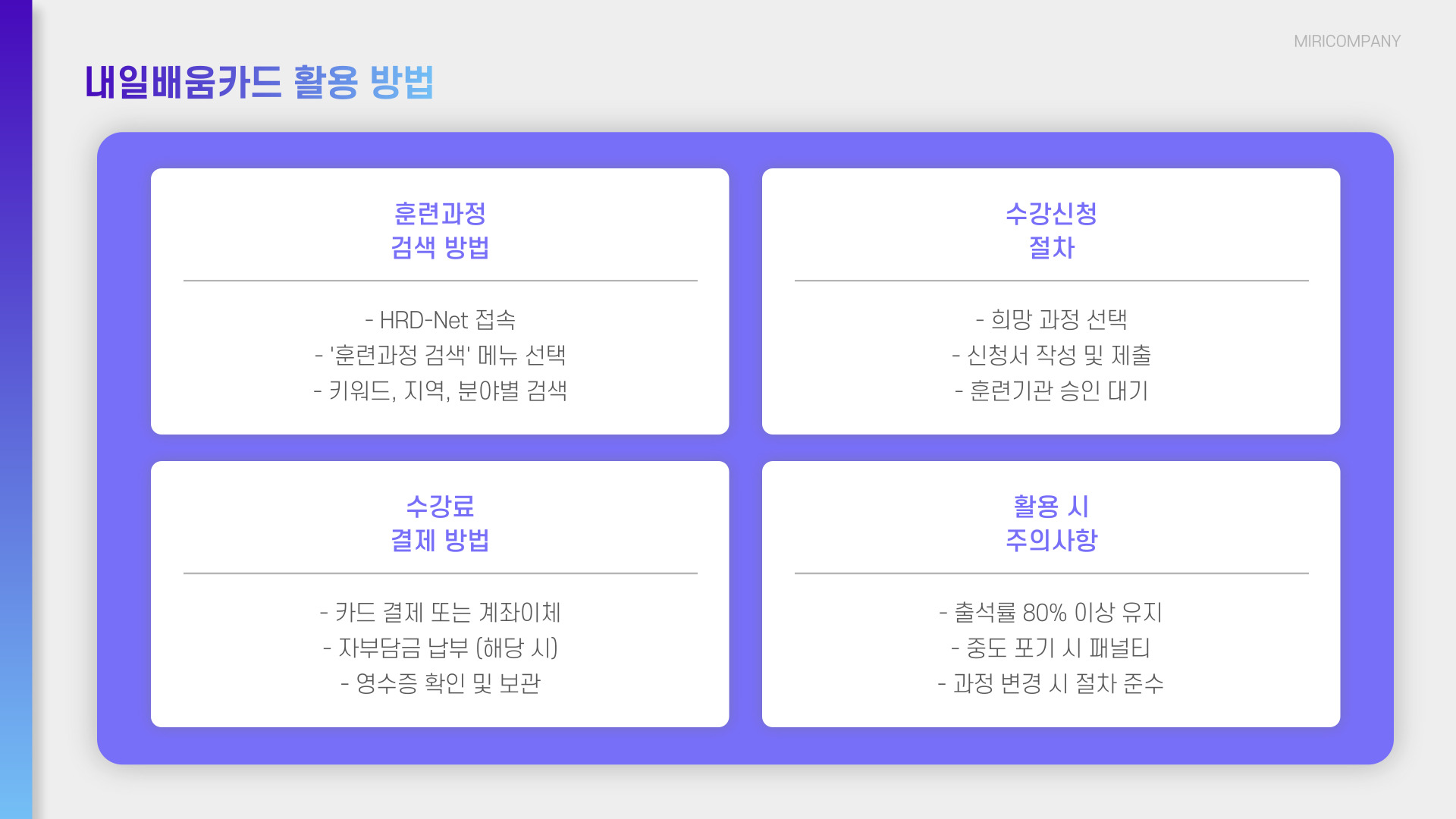 | 신청 후 확인 사항 | 카드 사용 여부 및 교육 수료증 발급 |
