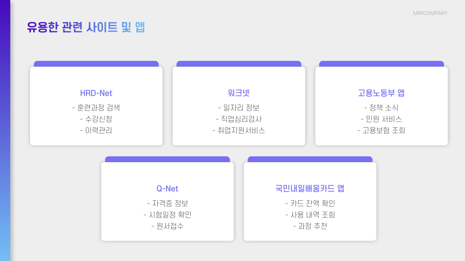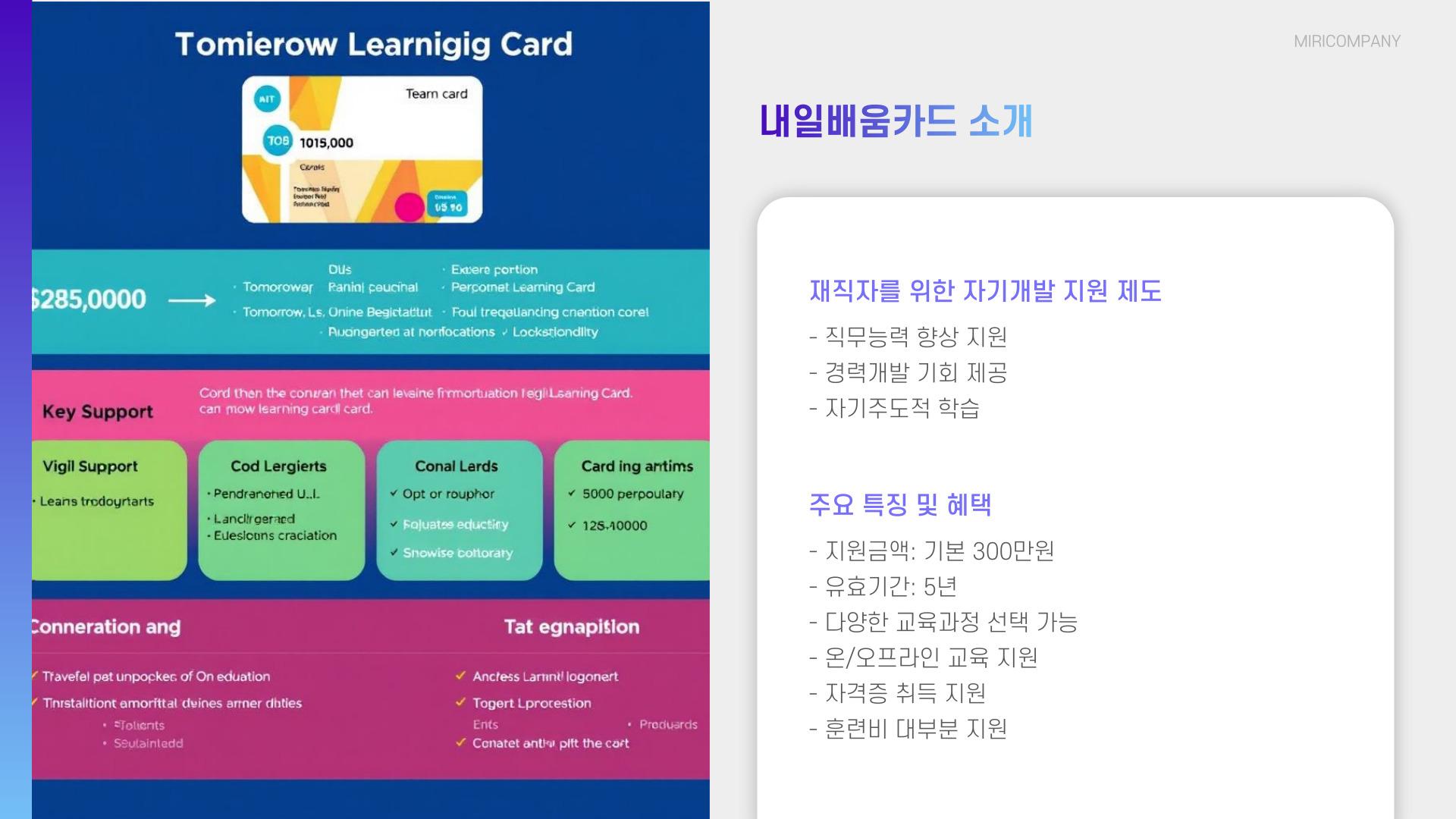 - 내일배움카드는 재직자를 위한 직업훈련 지원 카드입니다.