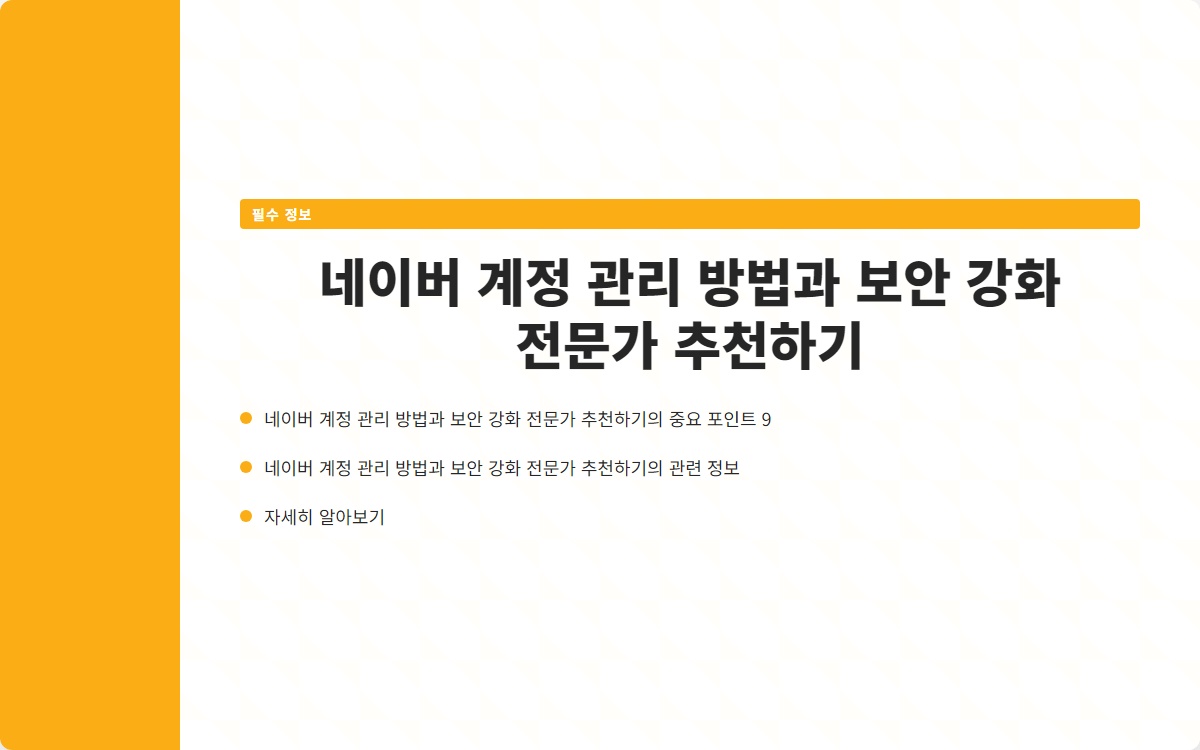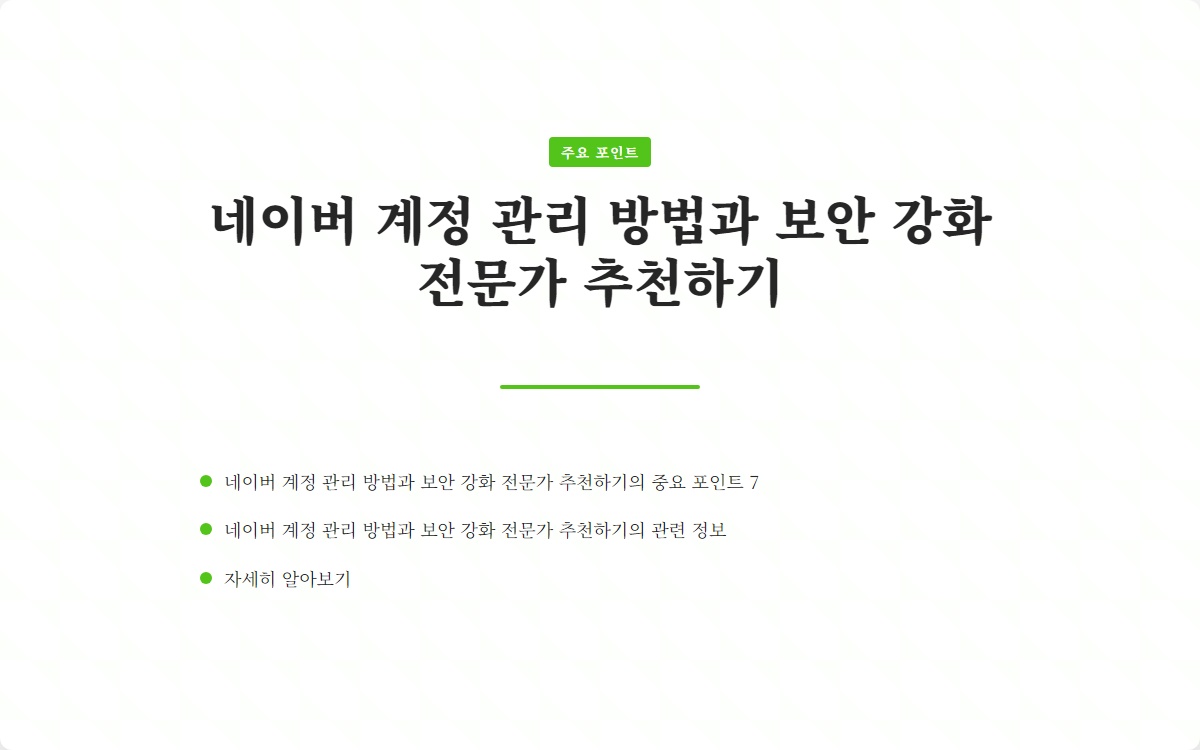 이 글을 통해 네이버 계정 관리 방법과 보안 강화 전문가를 추천해드립니다.