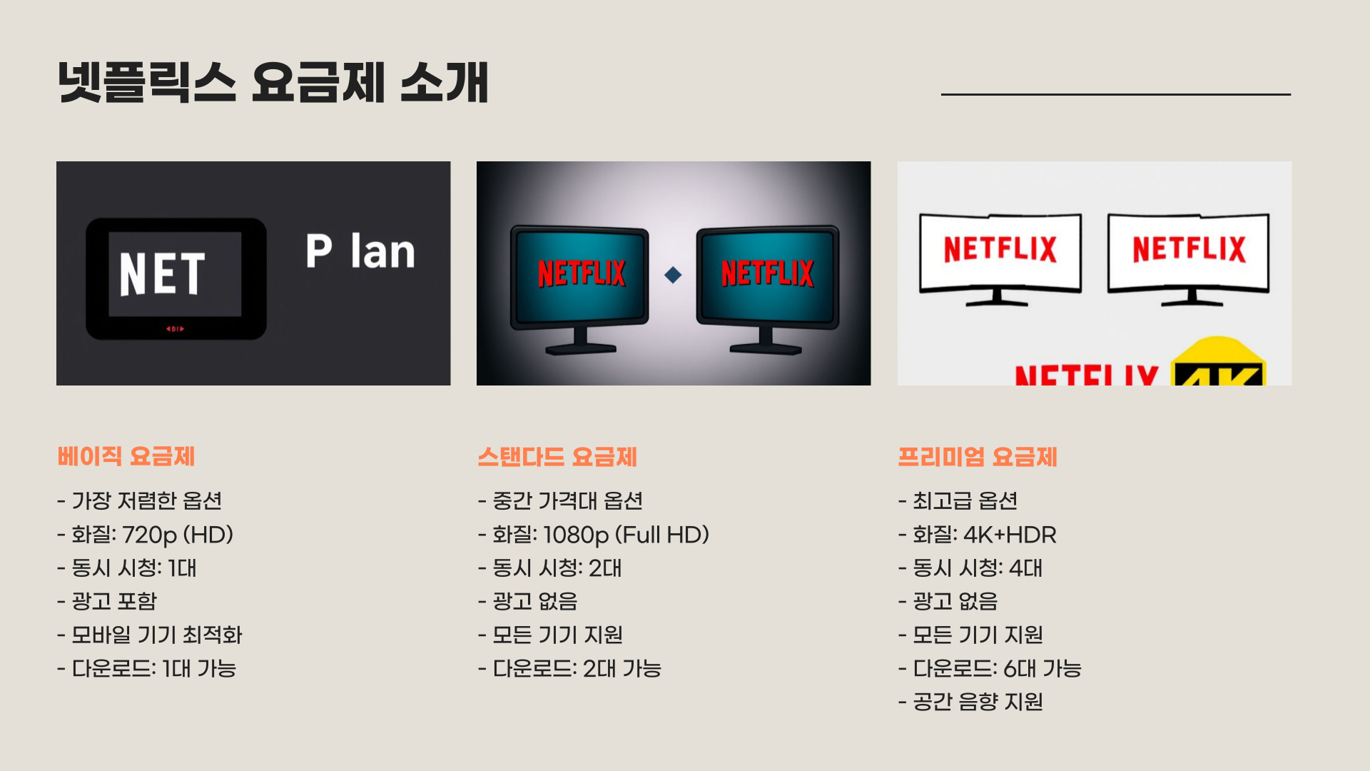 | 요금제 | 화면 수 | 화질 | 가격 |