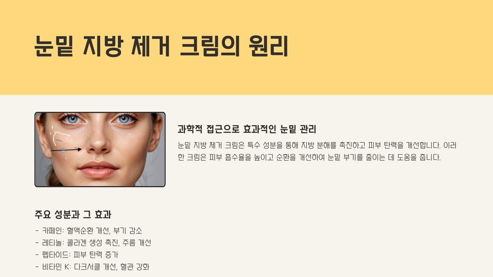 - 눈밑 지방제거 크림은 지방 감소 및 피부 탄력 개선에 효과적.
