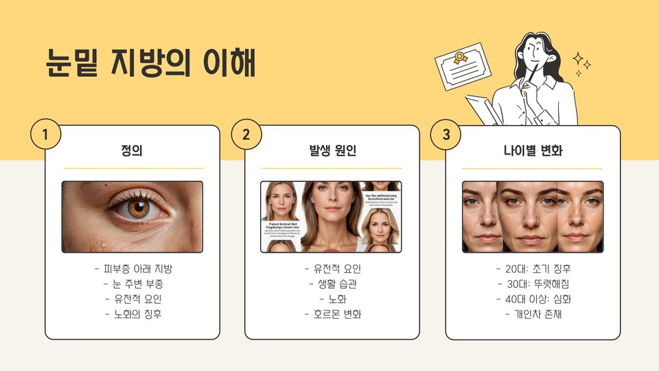 - 눈밑 지방은 유전, 노화, 생활습관에 의해 발생.