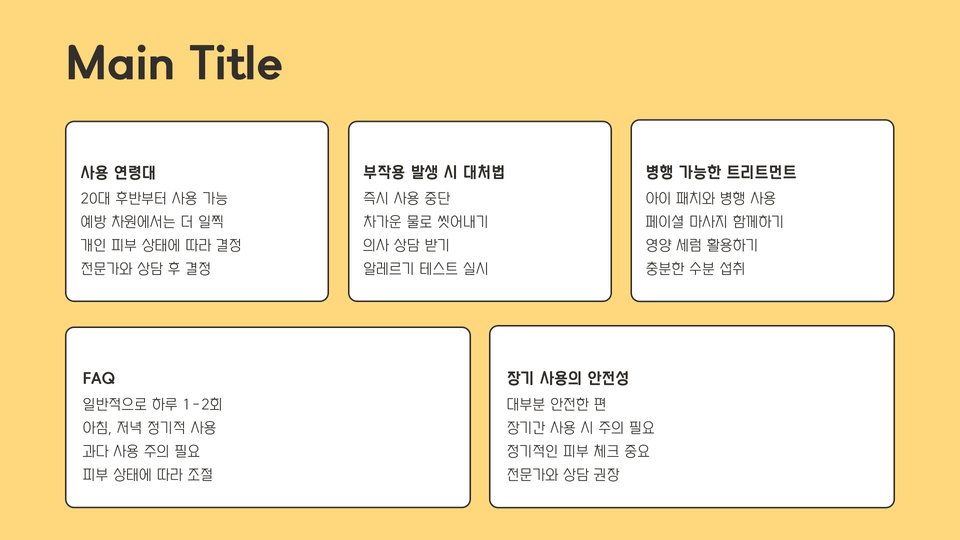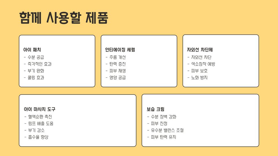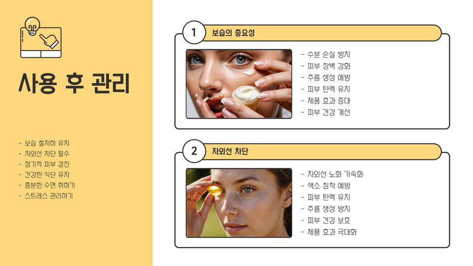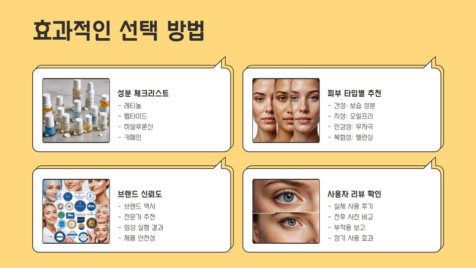 | 제품 선택 팁 | 피부 타입 맞춤, 성분 확인, 사용자 후기 참고 |