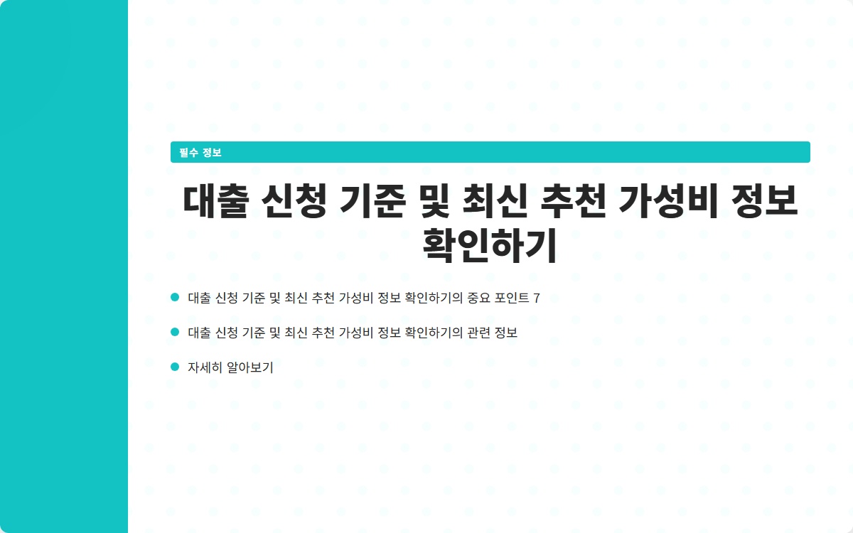 대출 신청 기준 및 최신 추천 가성비 정보 확인하기