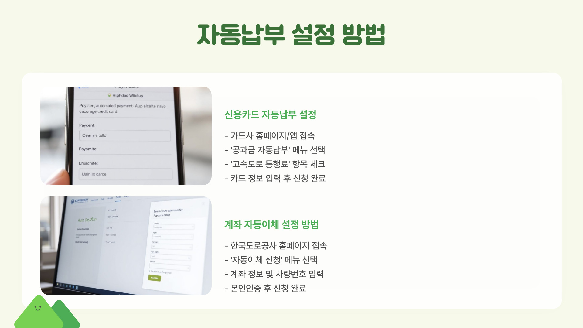 미납통행료를 효율적으로 관리하기 위한 몇 가지 꿀팁을 소개합니다. 첫째, 정기적인 조회를 권장합니다. 매달 또는 차량 사용 후 정기적으로 미납통행료를 확인하여, 누락된 부분이 없는지 확인하는 것이 좋습니다. 이를 통해 불필요한 가산세를 피할 수 있습니다.