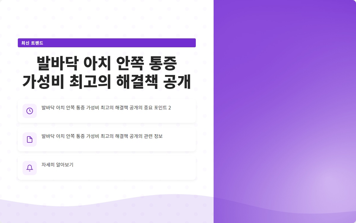 지금 바로 이 글을 통해 발바닥 아치 안쪽 통증의 원인과 해결책을 알아보세요!
