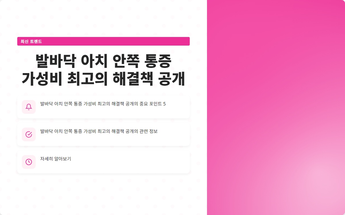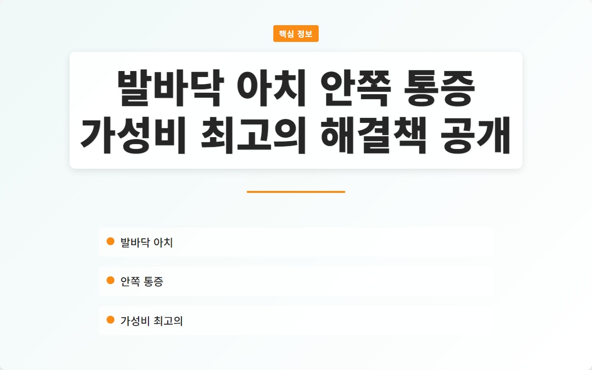 발바닥 아치 안쪽 통증, 많은 사람들이 고통받고 있는 문제입니다. 이 통증이 일상생활에 미치는 영향은 크며, 적절한 해결책을 찾는 것이 중요합니다. 그렇다면 가성비 최고의 해결책은 무엇일까요?