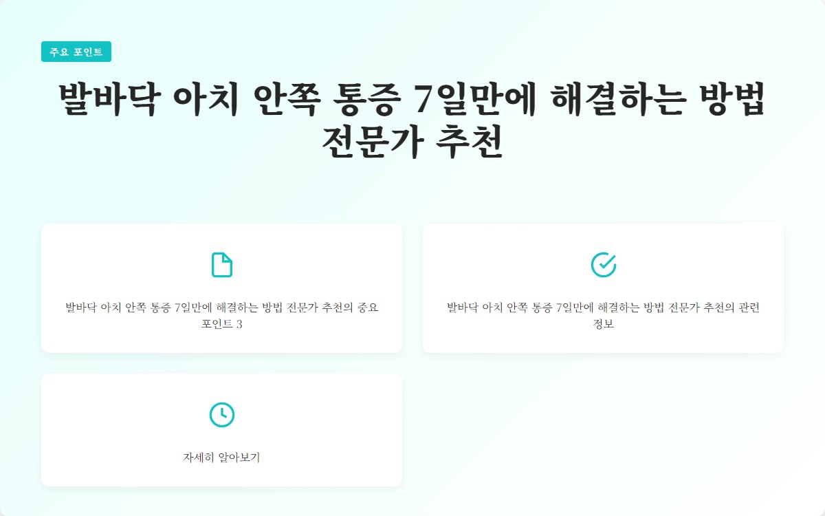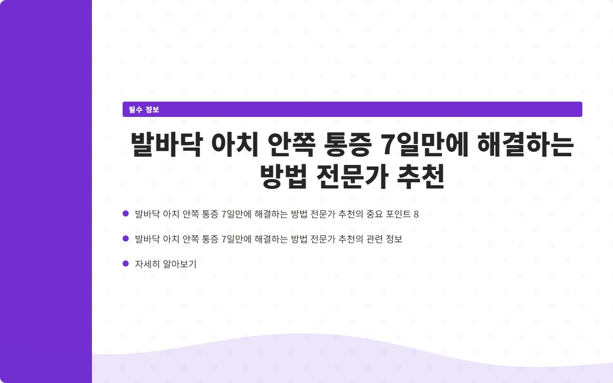 발바닥 아치 안쪽 통증은 많은 사람들에게 고통을 주지만, 전문가가 추천하는 방법을 따르면 7일 만에 개선할 수 있습니다. 통증의 원인을 파악하고, 단계별 해결책을 실천하면 여러분도 편안한 일상으로 돌아갈 수 있습니다.