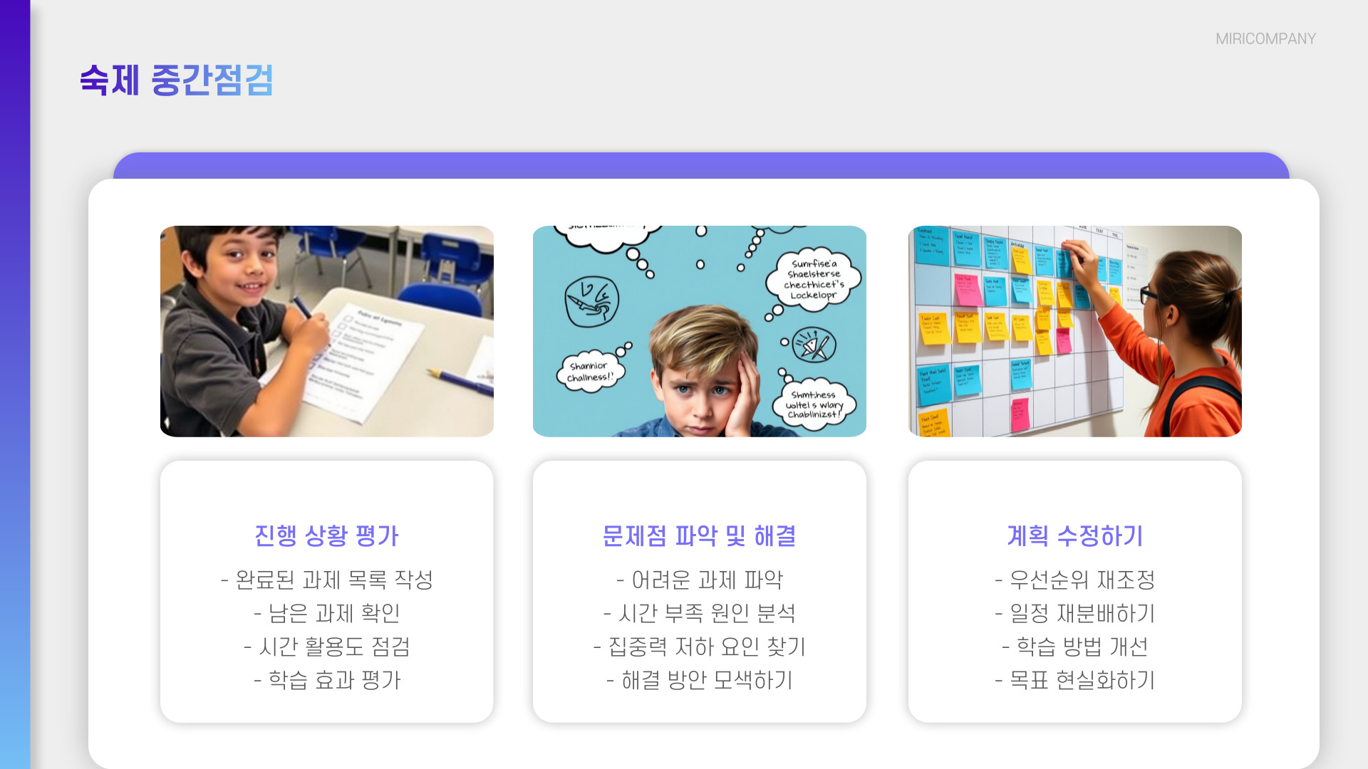 - 계획 세우기: 숙제 목록 작성과 우선순위 설정