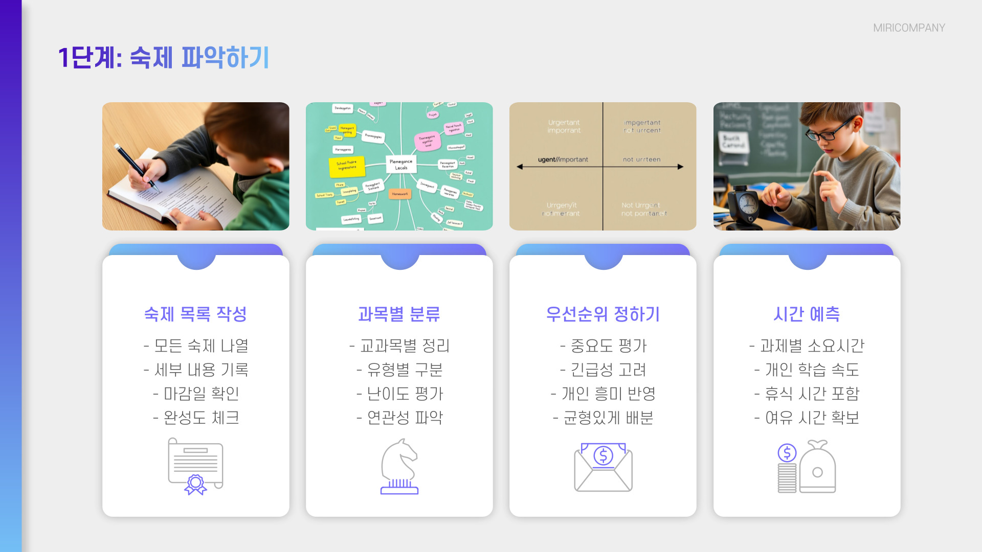 - 계획 세우기: 숙제 목록 작성과 우선순위 설정