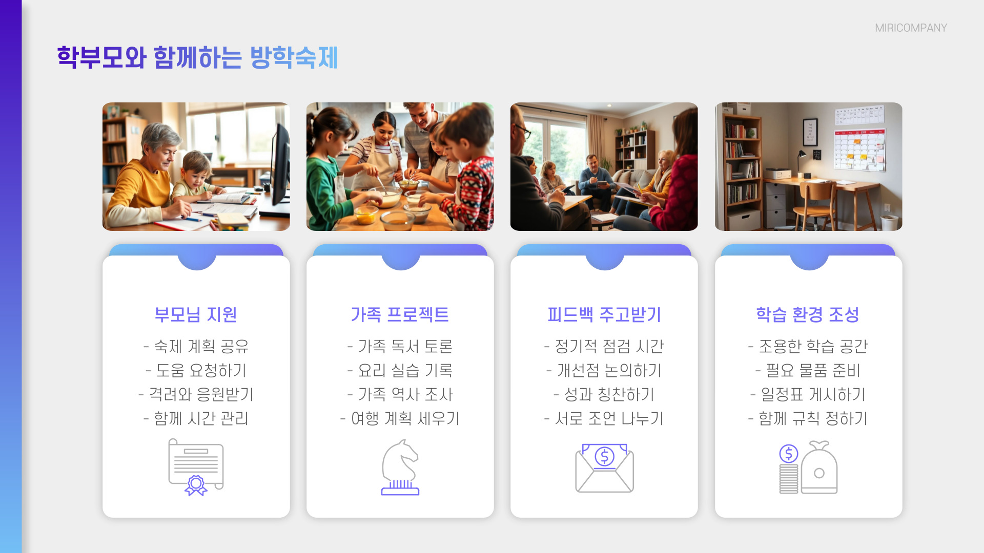 이상의 내용을 정리해보면, 방학숙제를 쉽게 할 수 있는 3단계는 계획하기, 작업 나누기, 검토 및 피드백 받기로 나뉘며, 각 단계를 통해 학생들은 방학을 더욱 의미 있게 보낼 수 있습니다. 이제 방학숙제를 두려워하지 말고, 더 알차게 활용해보세요!