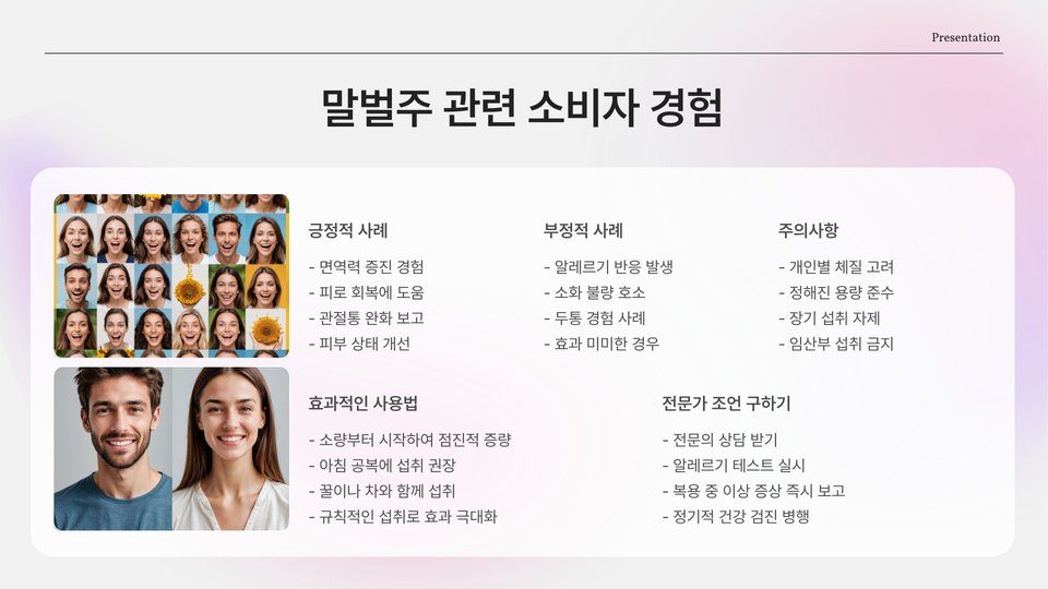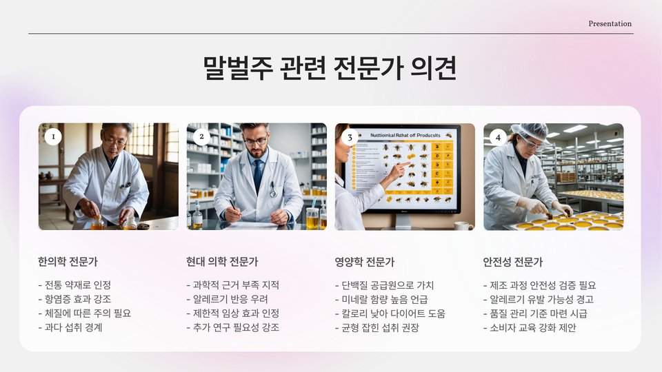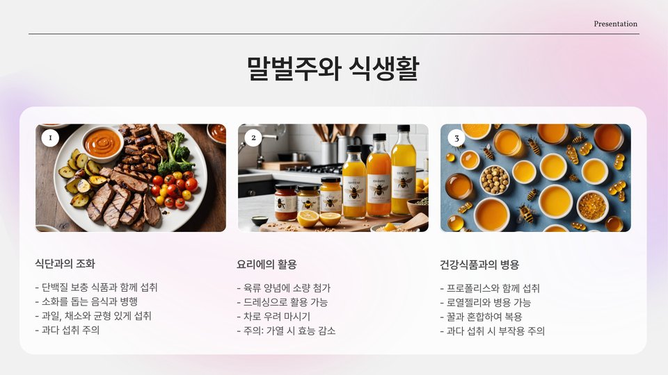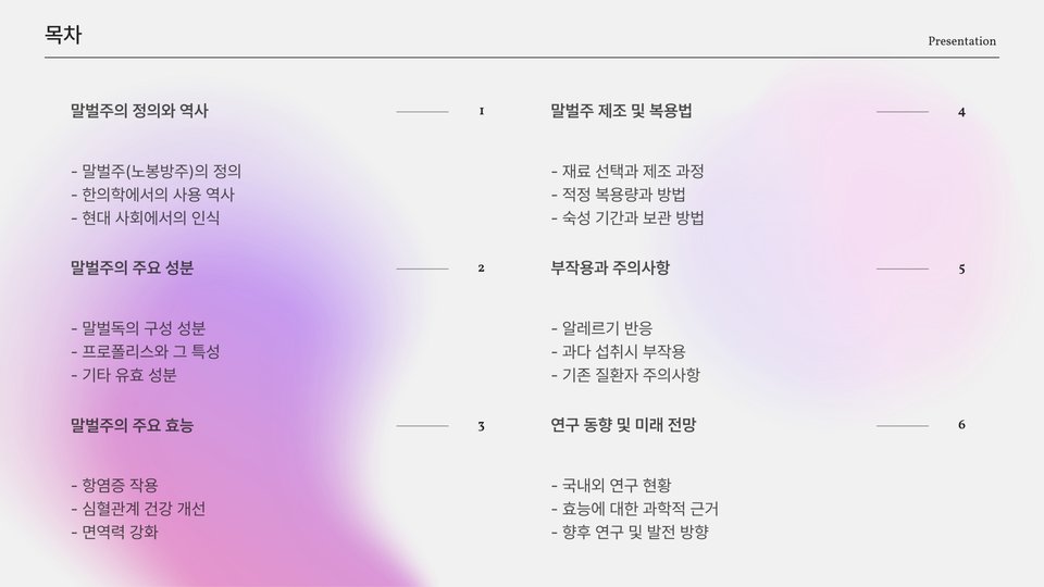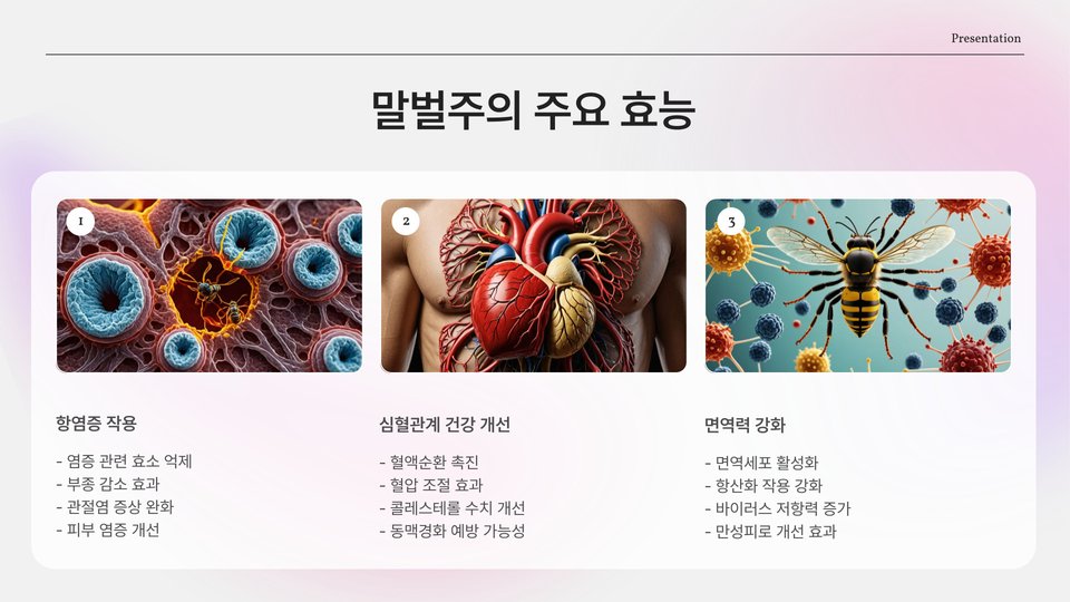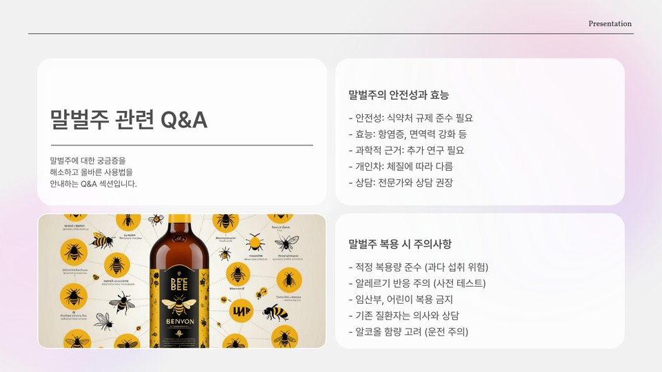 이러한 성분들이 상호작용함으로써 벌주는 단순한 음료가 아니라, 매일의 건강을 지키기 위해 필요할 수 있는 중요한 자원이 됩니다. 이러한 다양한 성분의 조화는 벌주를 특별하게 만드는 요소입니다.