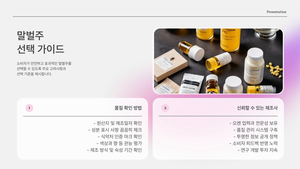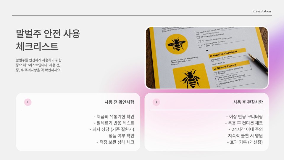벌주를 구입할 때는 몇 가지 주의사항이 있습니다. 우선, 믿을 수 있는 제조업체에서 생산된 제품을 선택하는 것이 중요합니다. 품질이 보장된 벌주는 효능이 뛰어나고, 안전하게 섭취할 수 있습니다.