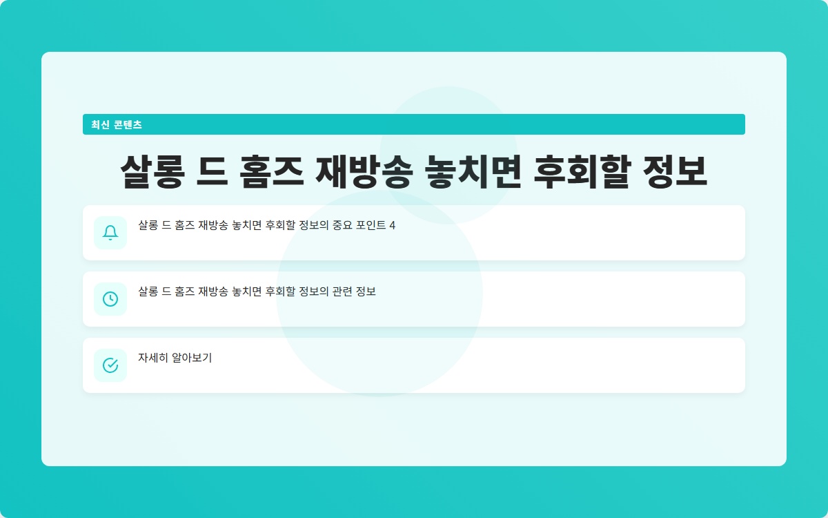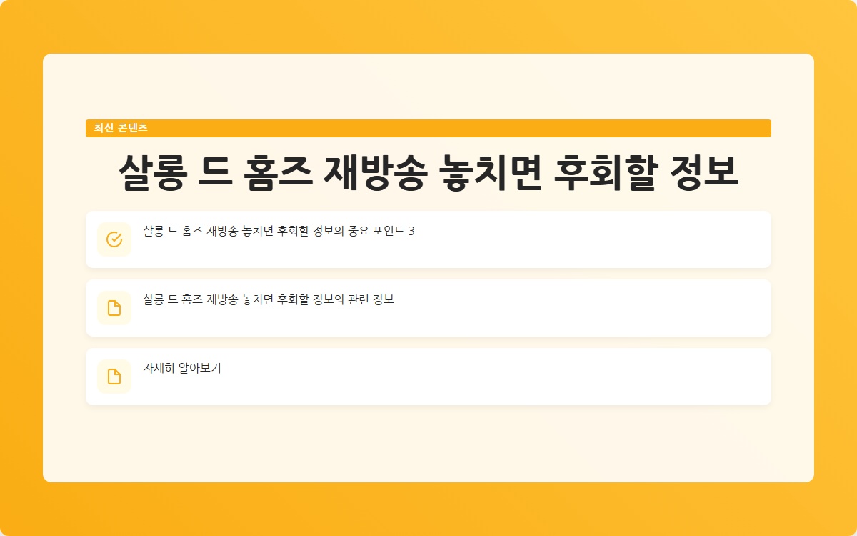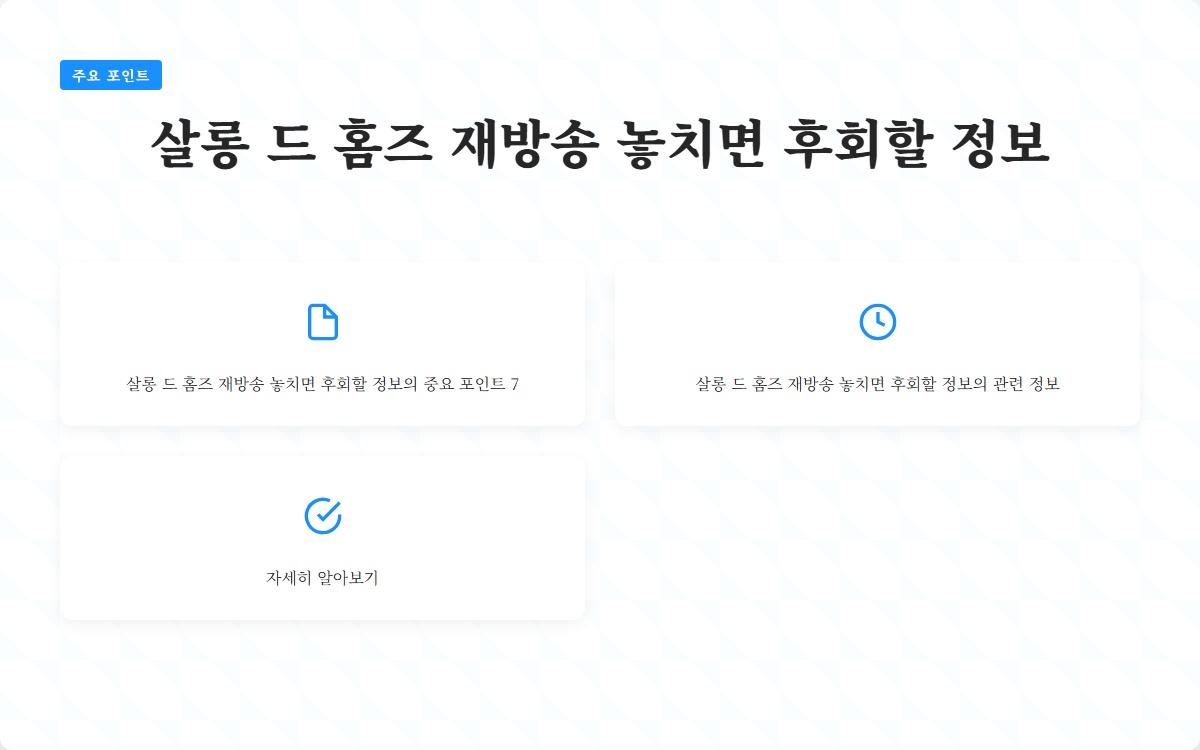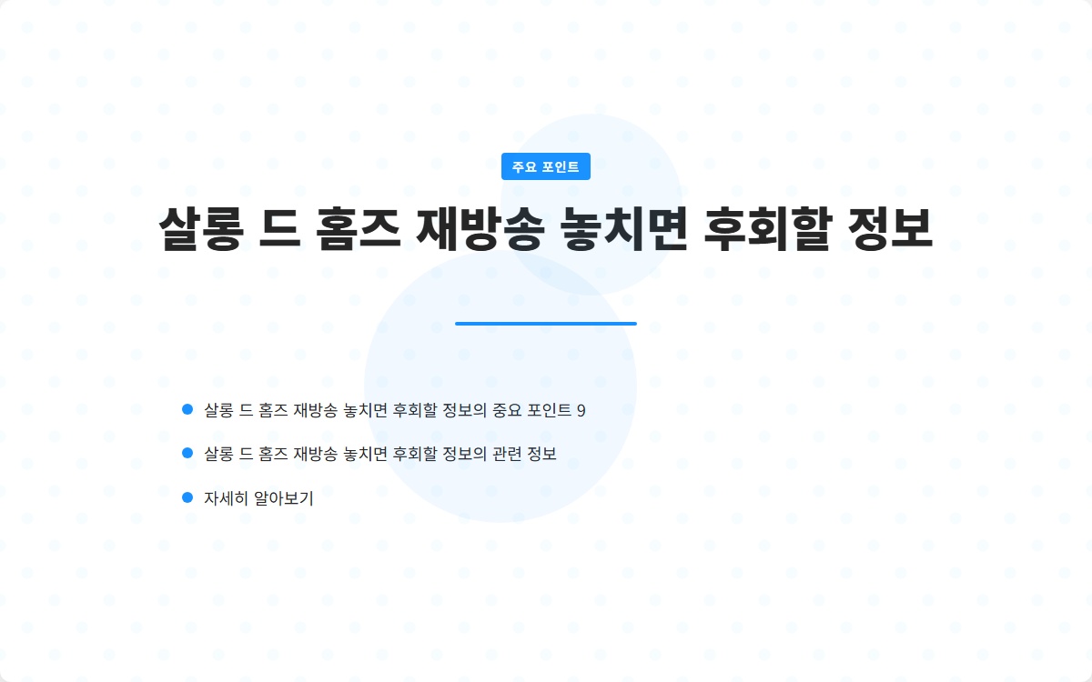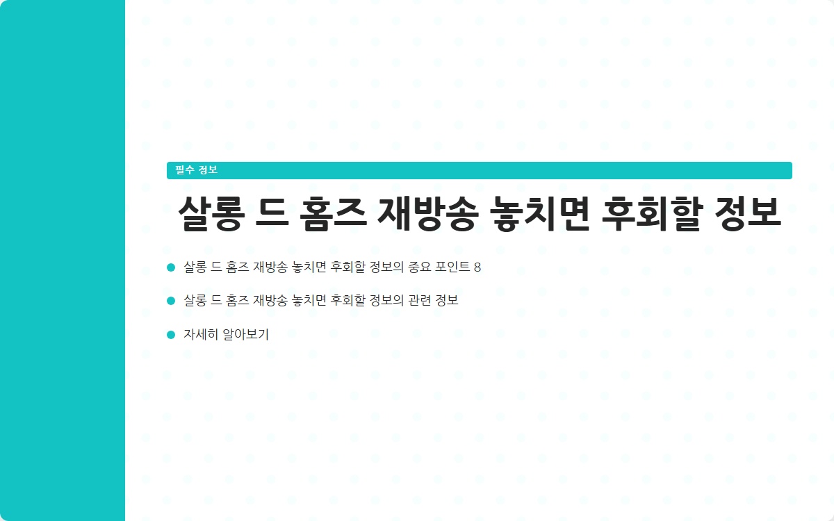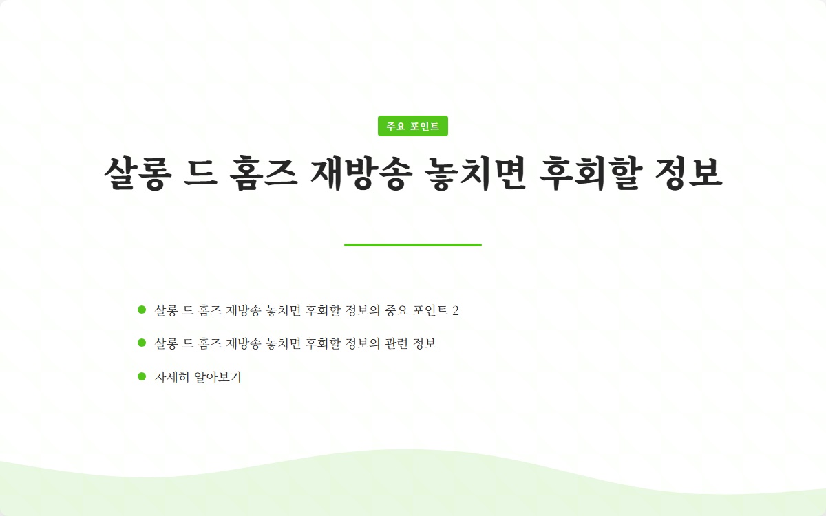 살롱 드 홈즈 재방송 비밀 꿀팁 공개 바로가기