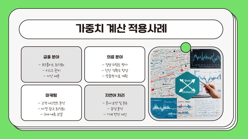가중치 계산은 데이터 분석의 핵심 요소 중 하나입니다. 데이터 세트 내의 다른 변수들이 서로 다른 정도로 결과에 영향을 미칠 때, 이를 적절히 반영하기 위해 가중치를 부여하는 것이 필수적입니다. 예를 들어, 고객 만족도 조사에서는 응답자의 연령, 성별, 직업 등의 요소들이 각기 다른 중요성을 가질 수 있습니다. 이러한 경우, 각 요소에 대해 적절한 가중치를 설정하는 것이 결과의 정확성을 높이는 데 기여합니다.