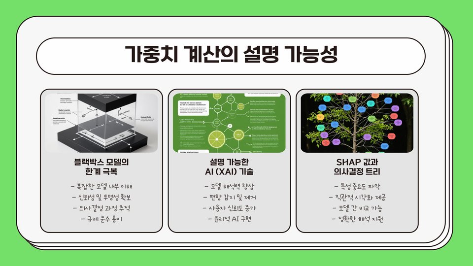 사실, 기계학습 기반의 접근법은 전통적인 가중치 계산보다 더 높은 accuracy를 보이는 경우가 많습니다. 특히 대규모 데이터셋을 다룰 때는 이러한 방법을 활용하여 인사이트를 도출하는 것이 매우 유용합니다.