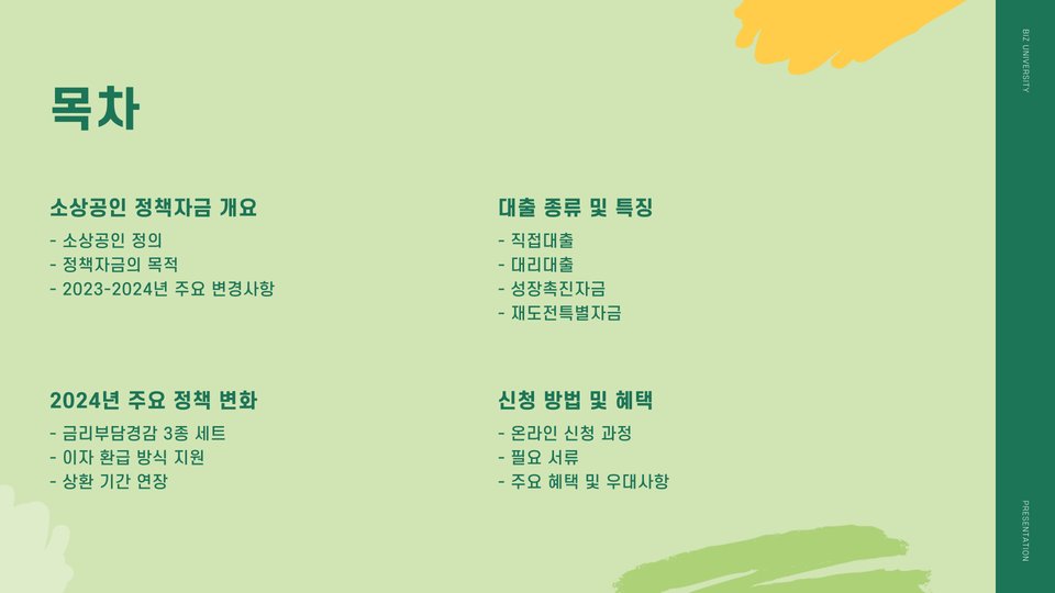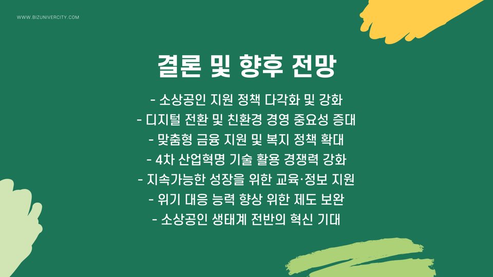 소상공인사업자대출은 소상공인들에게 더 나은 사업 환경을 제공하는 중요한 금융 도구입니다. 최신 트렌드를 반영한 다양한 혜택을 잘 활용하여 성공적인 사업 운영을 이어가시기 바랍니다. 추가 질문이 있으시다면 언제든지 문의해 주세요!