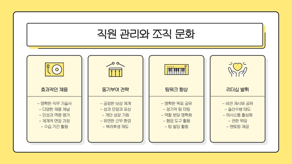 효율적인 자원 활용도 중요합니다. 인력, 시간, 물자 등의 자원을 최대한 활용하여 생산성을 높이는 방안을 찾아야 합니다. 예를 들어, 자동화 기술을 도입하면 인력 비용을 줄이고, 업무의 효율성을 높일 수 있습니다.
