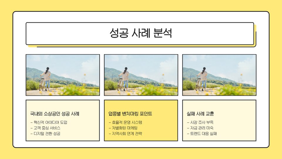독자 여러분이 소개된 방법들을 통해 자신의 소상공인 사업을 더욱 성공적으로 이끌어 나가기를 바랍니다. 앞서 언급했던 전략들을 가볍게 스쳐 지나가지 말고, 하나하나 실천해 나가길 기대합니다.