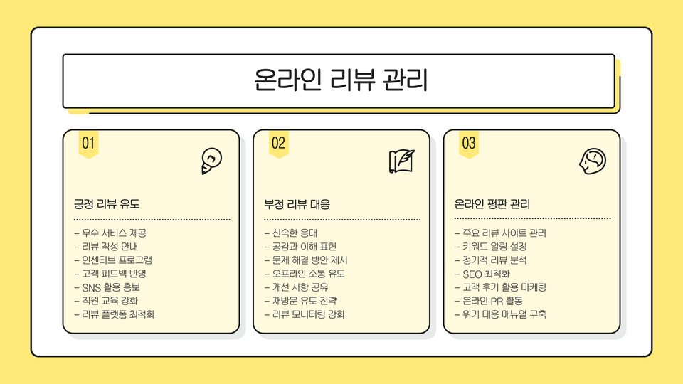 원가 절감은 필수적인 요소로, 고정비용과 변동비용을 세분화하고 불필요한 지출을 줄이는 것이 중요합니다. 다음으로 고객 관리는 단골 고객을 늘리는 방법으로, 마케팅과 연계하여 고객의 재구매를 유도하는 전략이 필요합니다. 마지막으로, 효과적인 온라인 마케팅을 통해 다양한 채널에서 소비자와 소통해야 합니다.