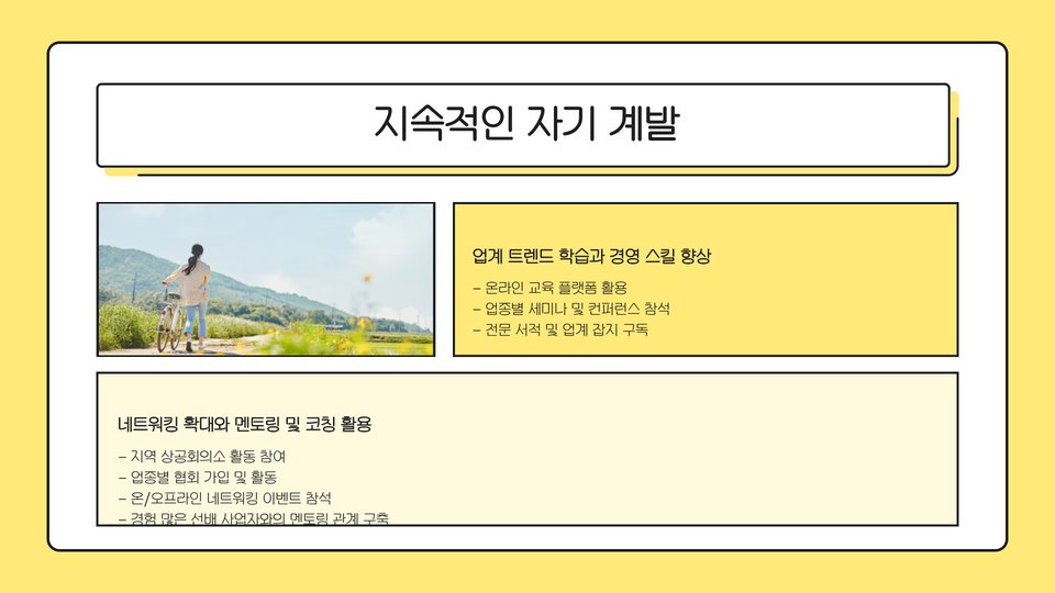 소상공인이 성공하기 위해서는 참신함과 유연함이 반드시 필요합니다. 경제의 변화에 뒤쳐지지 않기 위해서는 지속적인 학습과 고객 피드백 수렴이 필요합니다.